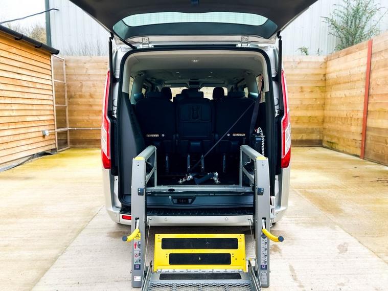 This Vic Young Mobility converted Ford Transit Custom Wheelchair Accessible Vehicle (WAV) has 9 Seats (3 Front and 6 Rear). Equipment includes Wheelchair Lift, Air Conditioning, Electric Front Windows, Electric Adjustable Wing Mirrors, Power Steering, Remote Central Locking, Tinted Rear Windows.