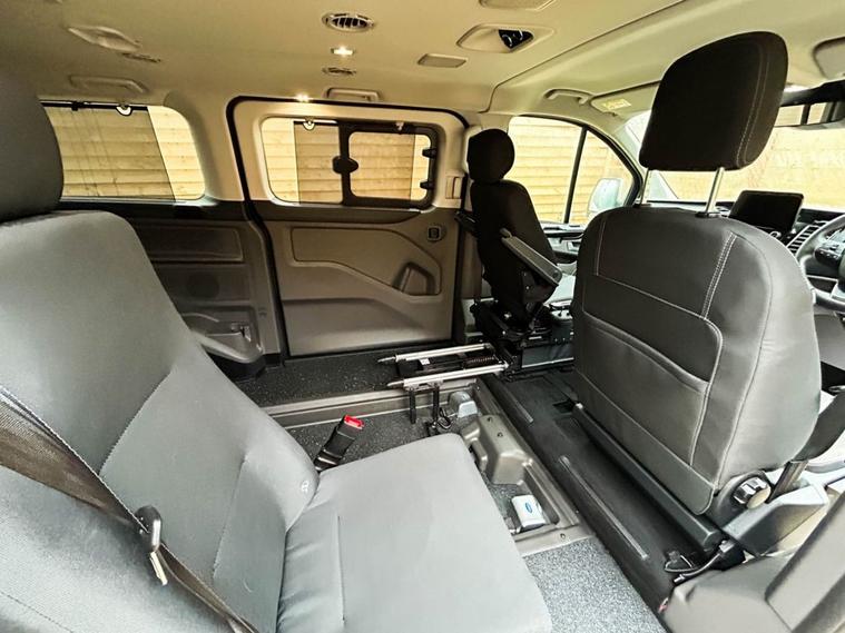 This Allied Mobility converted Ford Transit Custom Wheelchair Accessible Vehicle (WAV) has 3 Seats (2 Front and 1 Rear). Equipment includes Passenger Transfer Seat, Wheelchair Ramp, Electric Winch, Air Conditioning, Electric Front Windows, Electric Adjustable Wing Mirrors, Power Steering, Remote Central Locking, Tinted Rear Windows.