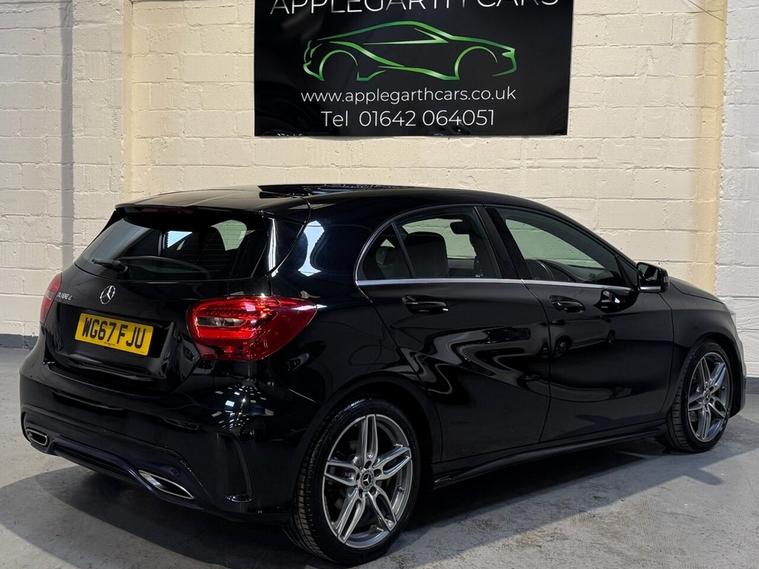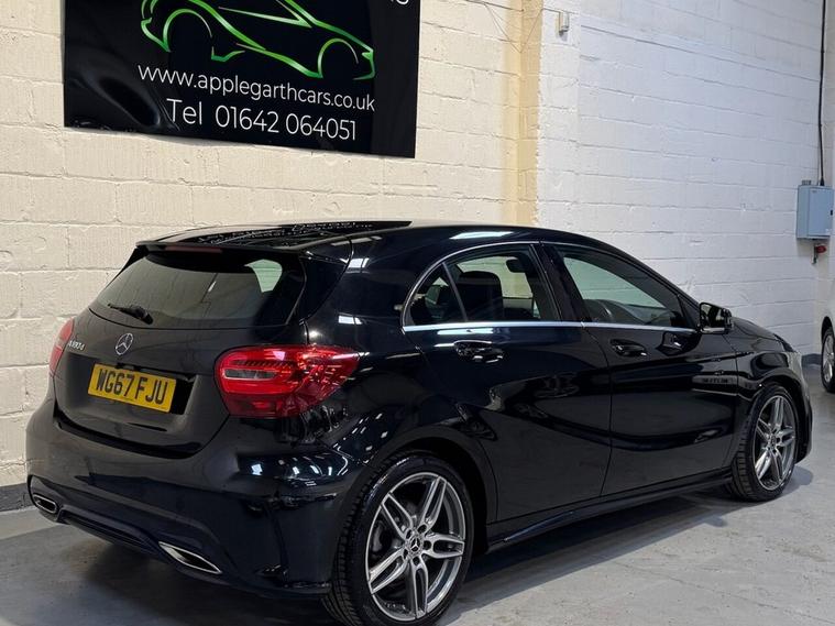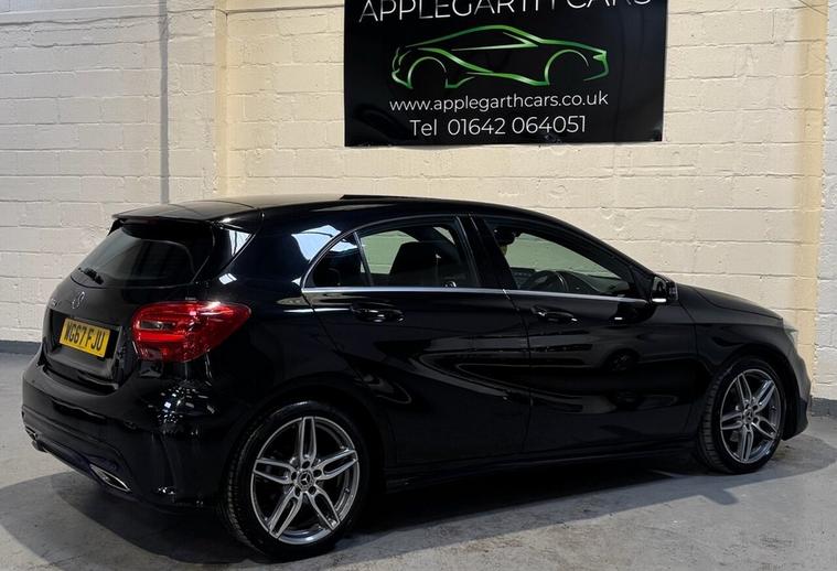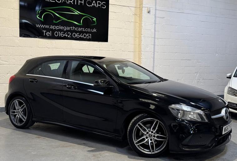 **Mercedes-Benz A Class 1.5 A180d AMG Line Hatchback 5dr Diesel Manual Euro 6 (s/s) (109 ps)** Registration: WG67 FJU 2017 (67 Plate) | 81, 000 Miles | Diesel | Manual | Black | 3 Owners Presenting this striking **Mercedes-Benz A-Class A180d AMG Line**, finished in sleek black and offering the perfect balance of sporty AMG styling, premium comfort, and outstanding fuel efficiency. With 81, 000 miles covered and three previous owners, this vehicle represents excellent value for a well-maintained, high-specification Mercedes-Benz hatchback. --- ### Performance & Efficiency The 1.5-litre diesel engine (109 ps) delivers smooth, responsive performance while maintaining impressive fuel economy. Paired with a precise 6-speed manual gearbox, this A180d is both engaging to drive and economical to run. * Euro 6 compliant (ULEZ friendly) * Stop/Start technology (s/s) * Strong fuel efficiency ideal for motorway and city driving * Low CO? emissions * Refined and comfortable ride --- ### AMG Line Specification As an AMG Line model, this A-Class benefits from enhanced styling and upgraded interior features: * AMG bodystyling package * AMG alloy wheels * Lowered sports suspension * Diamond-pattern sports seats with contrast stitching * Flat-bottom multifunction sports steering wheel * Brushed aluminium interior trim * Privacy glass --- ### Interior & Technology Designed with driver comfort and connectivity in mind, key features include: * 7-inch Mercedes-Benz infotainment display * Satellite Navigation * Bluetooth hands-free and audio streaming * DAB digital radio * USB interface * Cruise control with speed limiter * Air conditioning * Attention Assist * Trip computer * Multiple driving modes The cabin delivers premium build quality throughout, with supportive sports seating and excellent ergonomics. --- ### Practicality & Safety * 5-door practicality * Generous boot space * ISOFIX child seat points * Multiple airbags * ABS, ESP and traction control systems This hatchback combines everyday usability with executive-level comfort and road presence. --- ### Why Choose This A180d AMG Line? * Desirable AMG Line trim * Economical and reliable 1.5 diesel engine * Manual gearbox for driver engagement * Euro 6 compliant * Premium Mercedes-Benz build quality * Excellent condition for age and mileage This Mercedes-Benz A-Class AMG Line offers a superb opportunity to own a premium German hatchback with sporty styling and low running costs. Contact today to arrange a viewing or test drive.