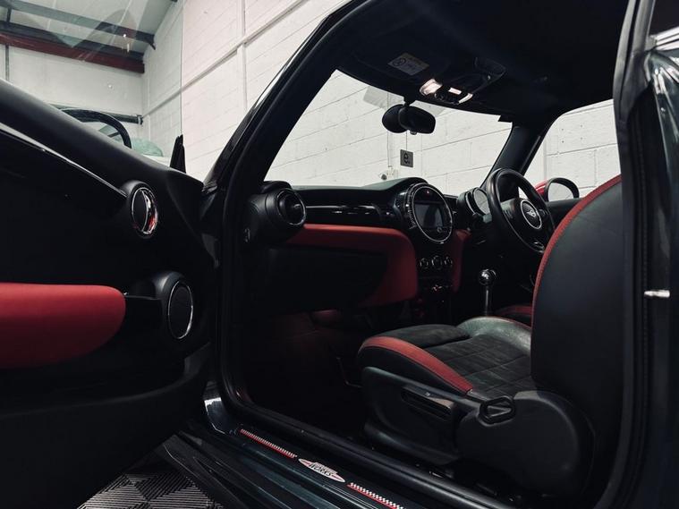 A stunning MINI 2.0 John Cooper Works Manual in Rebel Green with Carbon Black JCW Dinamica Seats which has covered 46k miles. Heated Seats, Headup Display, Rear Tints and 18 JCW Cup Wheels. Service History