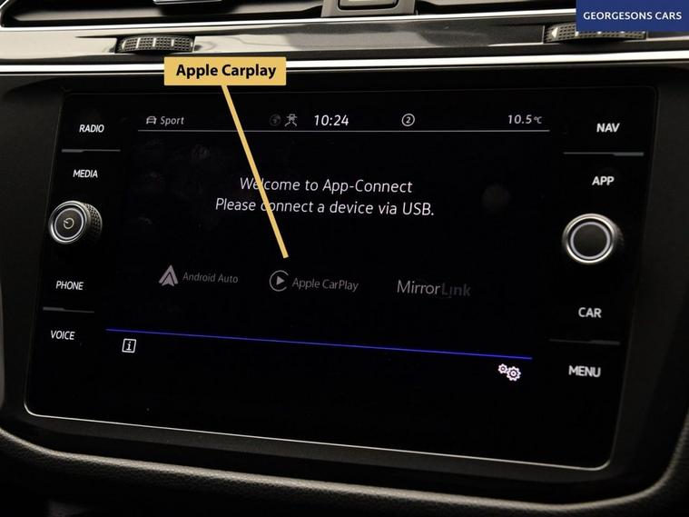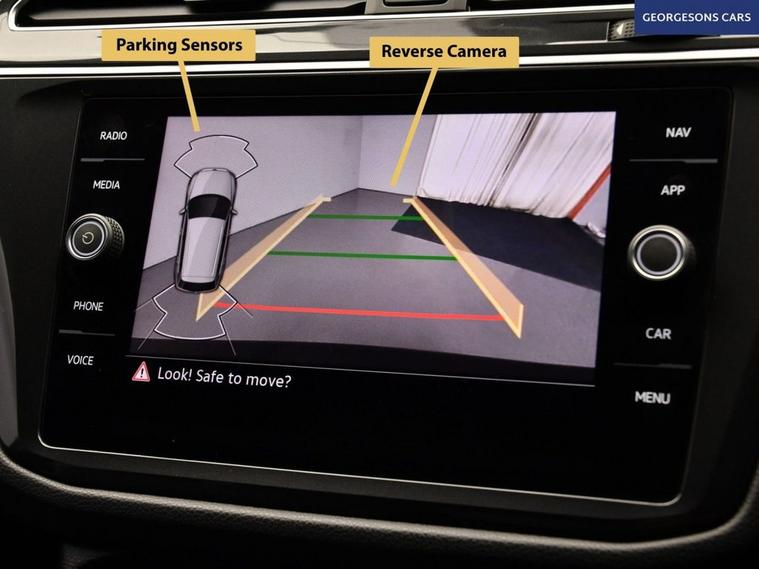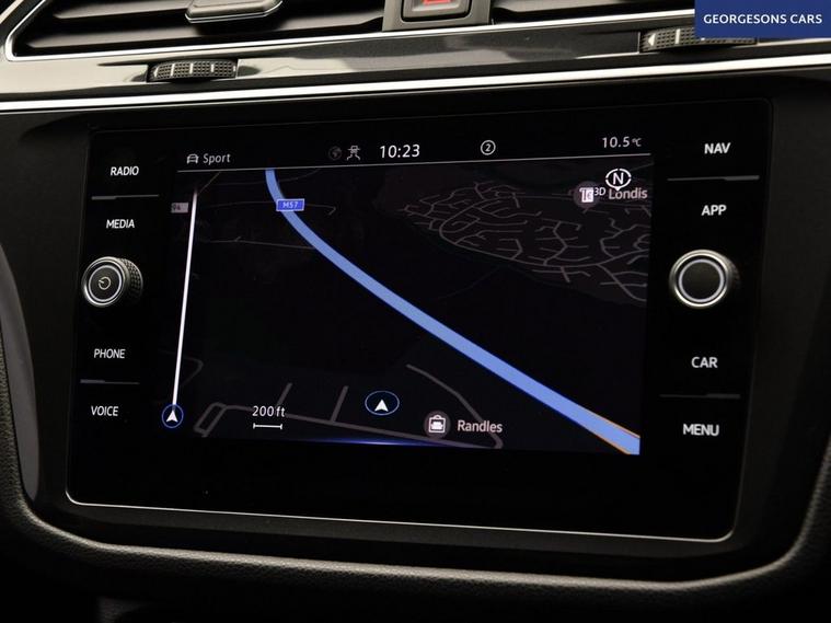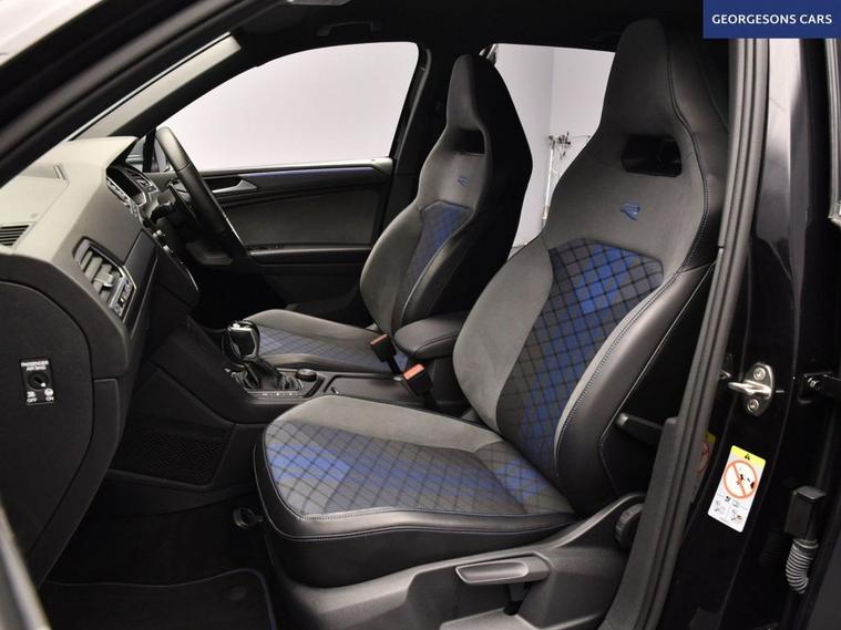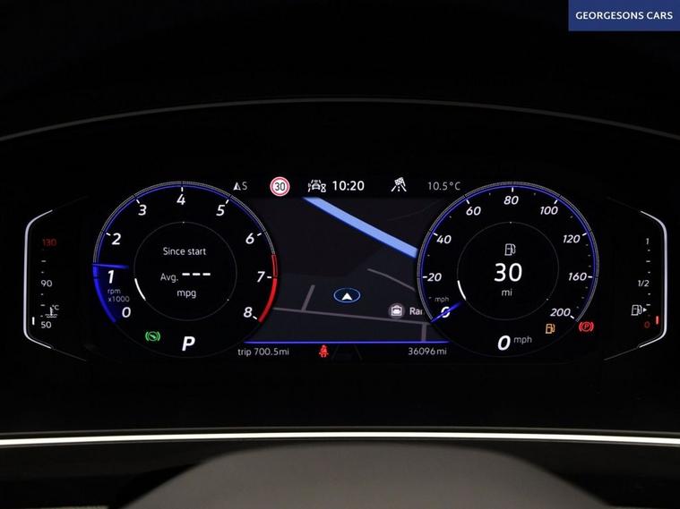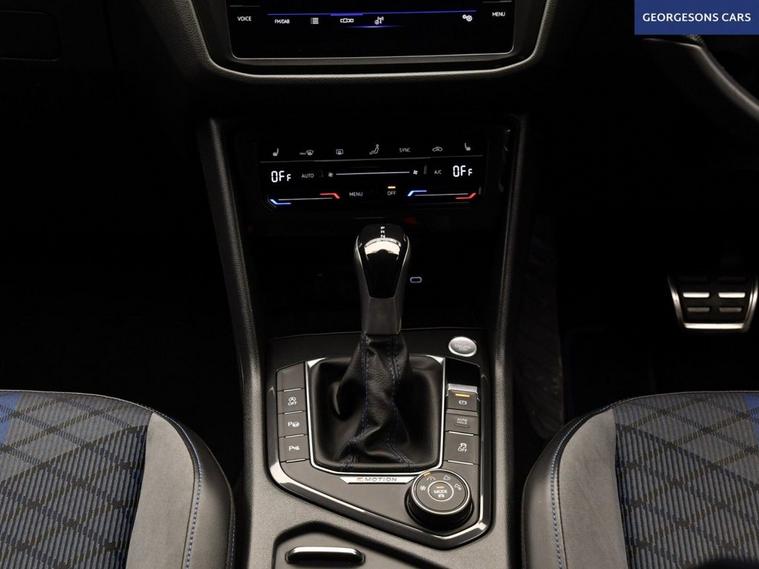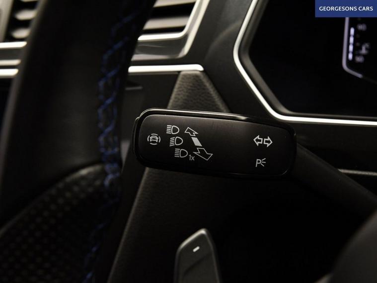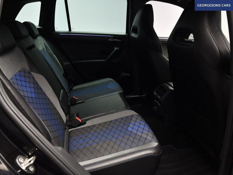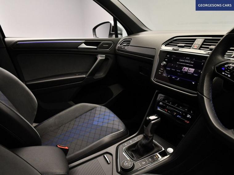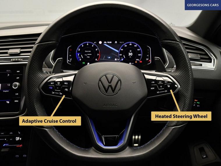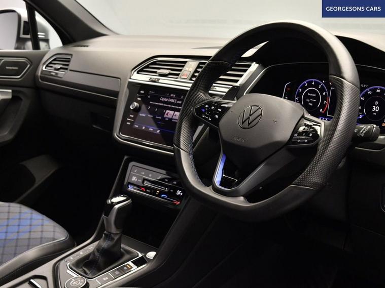The Volkswagen Tiguan 2.0 TSI R combines a powerful 2.0-litre turbo petrol engine with 320hp, delivering 0-62mph in 4.9 seconds and up to 32.5mpg in this all-wheel-drive 4Motion setup with a smooth 7-speed DSG automatic transmission. The flagship R trim brings aggressive styling with 20-inch alloys, sports suspension, blue brake calipers and a high-performance interior. With four services, this Tiguan is in excellent condition. Navigate effortlessly with integrated satellite navigation, Apple CarPlay, Bluetooth and DAB radio, ensuring seamless connectivity on every journey. Parking is a breeze thanks to the reverse camera, parking sensors and park assist, providing clear visibility and confidence in tight spaces. Stay comfortable with dual-zone climate control, front and rear heated seats, heated steering wheel and ambient lighting for a sophisticated cabin atmosphere. Adaptive cruise control with speed limiter and selectable drive modes enhance safety and relaxation on highways. The spacious five-door SUV design includes a 615-litre boot for practicality.