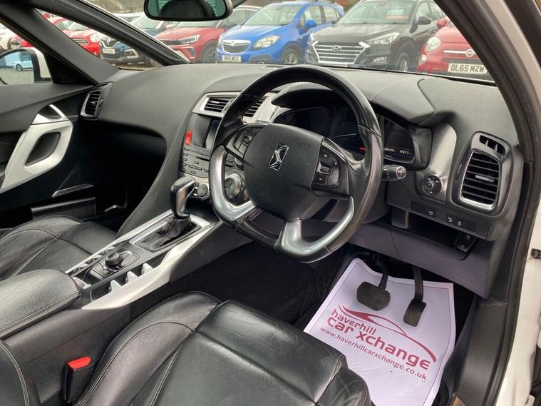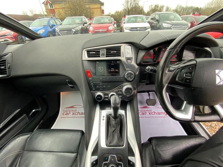 AUTOMATIC+EMYWAY COLOUR SATELLITE NAVIGATION SYSTEM+RADIO-CD-MP3 PLAYER+BLUETOOH+AUTOMATIC DUAL ZONE CLIMATE CONTROL AIR-CONDITIONING+LUXURIOUS BLACK LEATHER UPHOLSTERY+AUTOMATIC HEADLIGHT ACTIVATION+RAIN-SENSING AUTOMATIC WINDSCREEN WIPERS+PARKING ASSISTANCE WITH PARKING CAMERA+GLASS ROOF+PEARLESCENT WHITE PAINT+18 INCH ALLOY WHEELS. At Haverhill Car Xchange we would like to offer you our AUTOMATIC Citreon DS5 DSport Hatchback which has been finished in a Pearlescent White paint with luxurious Black Leather upholstery. Excellent Specification Includes an EMyway Colour Satellite Navigation System, European Mapping, Live Traffic Updates, DAB Radio-CD-MP3 Player, Bluetooth System, eTouch Emergency and Assistance System, USB Socket, Auxiliary Socket, 12 Volt Power Socket, Dual Zone Climate Control Air-Conditioning, Cruise Control with Speed Limiter, Front and Rear Electric Windows with One-Touch Operation and Anti-Pinch, Body Coloured Bumpers/Door Handles and Door Mirrors with Integrated Side Indicators, Automatic Headlight Activation, LED Daytime Running Lights, Guide-Me-Home Headlight Function, Kerb Lighting on Door Mirrors, Front Fog Lights with Cornering Function, Rain-Sensing Windscreen Wipers, Parking Assistance with Parking Camera, Multifunction Leather Steering Wheel, Glass Roof, Luxurious Leather Upholstery, Keyless Access and Start, 18 Inch Alloy Wheels, Power Assisted Steering, ABS Breaking System, Airbags, Alarm, Immobiliser, Remote Central Locking and ISOFIX Anchorage Points for Child Seats.