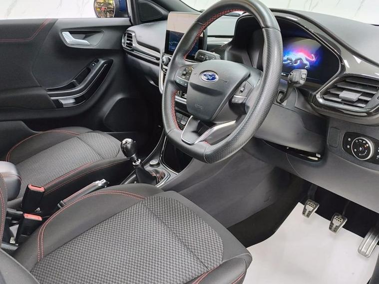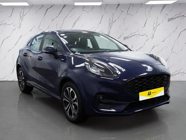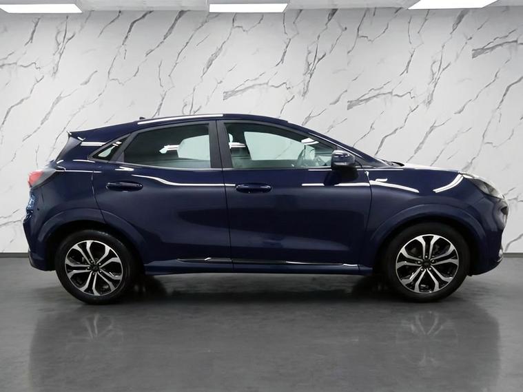 This 2021 Ford Puma ST Line T boasts a full dealership service history, offering peace of mind for its next owner. This stylish compact SUV features a responsive 1.0L petrol engine and meets Euro 6 emissions standards. Inside, youll find manual air conditioning to keep you comfortable, alongside wireless phone charging for convenience. The Ford SYNC 3 navigation system seamlessly integrates with Android Auto and Apple CarPlay, allowing easy access to your favourite apps and music via Bluetooth. Rear parking sensors are also included to assist with manoeuvring. The Puma ST Line T is designed to impress, with a notable fuel economy of 52 mpg, indicating it is more efficient than many similar vehicles. Its low CO2 emissions further highlight its environmentally conscious design. This particular vehicle has a clear vehicle history check, confirming its excellent provenance.