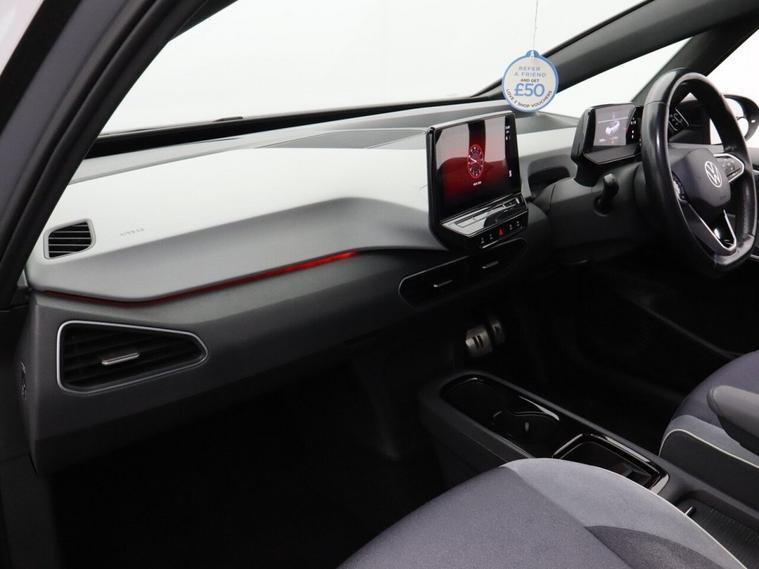 This 2021 Volkswagen ID.3 Pro Performance Tech is presented with a clear vehicle history check and a long MOT, offering peace of mind for its next owner. As an electric vehicle, it boasts a 62 kWh battery with a maximum range of 260 miles when new. This model features the Tech trim and comes equipped with a 1 Zone Climatronic system for climate control, a Comfort Package including heated seats and steering wheel, and a Design Package Plus with LED headlights and an opening panoramic sunroof. For convenience and safety, it includes front and rear parking sensors, a rear camera, and keyless entry as part of the Assistance Pack Plus. The ID.3 Pro Performance Tech offers impressive performance, achieving 0-60mph in just 7.3 seconds, demonstrating its responsive acceleration. Charging is flexible, with a full charge at home taking approximately 9 hours and 30 minutes using a 7kW charger, while rapid public charging can replenish the battery from empty to 80% in as little as 37 minutes. These capabilities, combined with its substantial boot space, make this electric Volkswagen a practical and efficient choice, highlighting its advantages over other vehicles in its class.