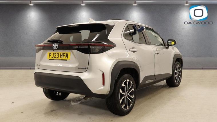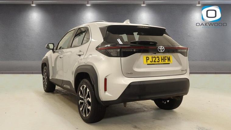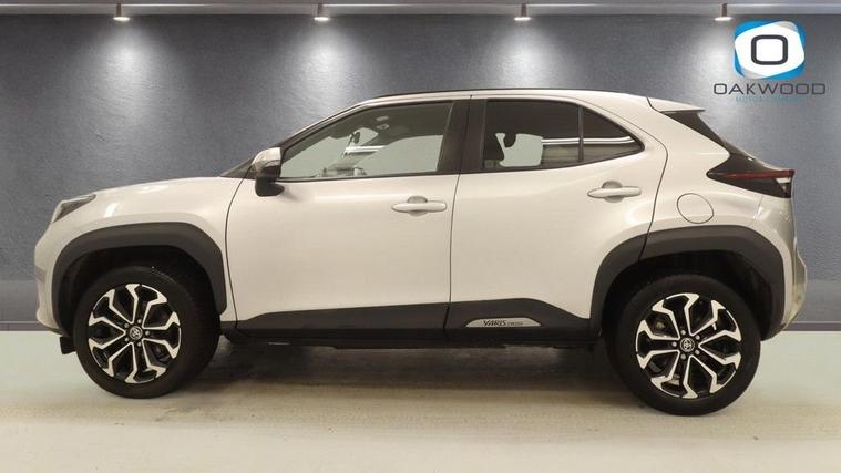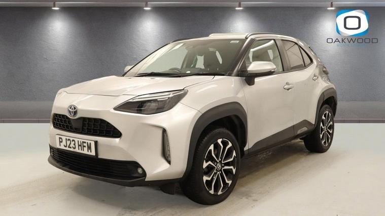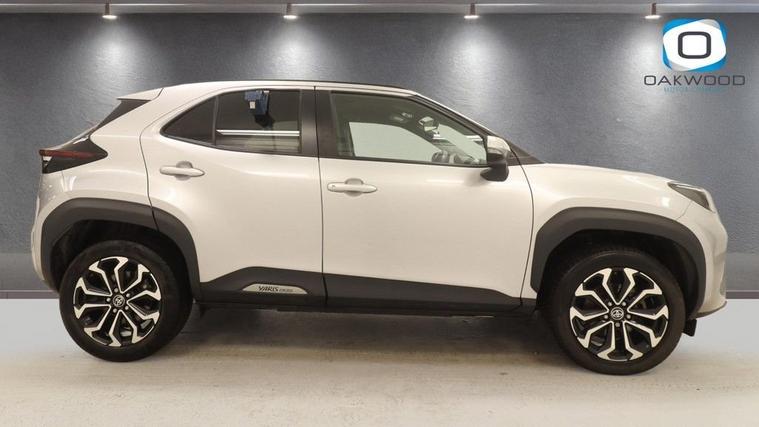 This 2023 (PJ23 HFM) Toyota Yaris Cross 1.5 VVT-h Design SUV 5dr Petrol Hybrid E-CVT Euro 6 (s/s) (116 ps) is finished in stylish silver and has covered 34, 518 miles. Combining Toyotas renowned hybrid technology with SUV practicality and modern styling, this Toyota Yaris Cross Hybrid Design is a superb example of an efficient and well-equipped compact SUV. Powered by the advanced 1.5 VVT-h petrol hybrid engine producing 116 ps, paired with a smooth E-CVT automatic transmission, this Euro 6 (s/s) compliant Yaris Cross delivers excellent fuel economy and low emissions without compromising everyday performance. The self-charging hybrid system seamlessly switches between petrol and electric power, making it ideal for urban commuting as well as longer motorway journeys. The Design specification offers an impressive level of equipment and distinctive styling. This example sits on eye-catching 17-inch alloy wheels 5 double spoke, machine faced in bi-tone dark grey, enhancing its confident road presence. Convenience is enhanced with Smart Entry and Push-Button Start, allowing effortless access and ignition. Technology is a key highlight, featuring the 8-inch Toyota Touch 2 multimedia system with full smartphone integration including Apple CarPlay and Android Auto, keeping you connected on every journey. Intelligent Adaptive Cruise Control ensures relaxed motorway driving, automatically adjusting speed to maintain a safe distance from vehicles ahead, while the reversing camera provides added confidence when parking. With its elevated driving position, spacious interior and versatile boot capacity, this Toyota Yaris Cross 1.5 Hybrid SUV offers practicality alongside outstanding efficiency. Stylish, reliable and economical, this silver Toyota Yaris Cross petrol hybrid automatic is a fantastic opportunity to own a modern and highly sought-after compact hybrid SUV.
