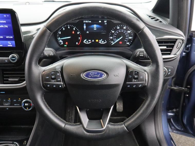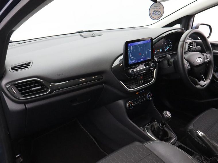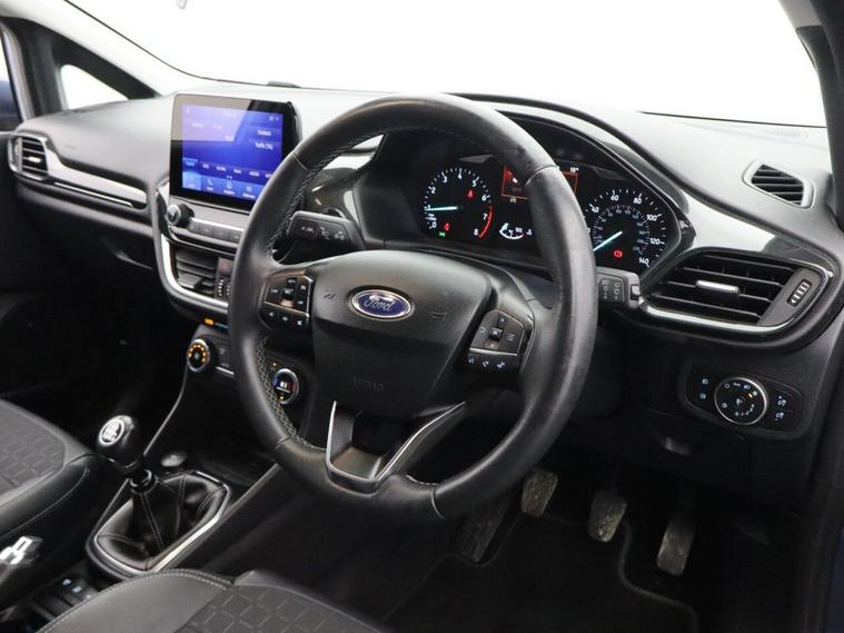 This 2020 (EA70 ZDU) Ford Fiesta 1.0T EcoBoost MHEV Titanium X Hatchback 5dr Petrol Manual Euro 6 (s/s) (125 ps) is finished in striking blue and has covered just 21, 119 miles. Combining mild-hybrid efficiency with premium comfort and advanced technology, this Ford Fiesta Titanium X EcoBoost is a superb example of one of the UKs most popular hatchbacks. Powered by the award-winning 1.0T EcoBoost petrol engine with Mild Hybrid (MHEV) technology, producing 125 ps, and paired with a smooth 6-speed manual gearbox, this Euro 6 (s/s) compliant Fiesta delivers lively performance alongside impressive fuel economy. The mild-hybrid system enhances efficiency and responsiveness, making it ideal for both city driving and motorway journeys. The range-topping Titanium X specification ensures a high level of comfort and refinement. Inside, the cabin features interior ambient lighting, creating a modern and premium atmosphere, while wireless charging keeps your devices powered without the need for cables. Technology and convenience are key highlights, including cruise control with brake function, providing relaxed and controlled motorway driving. Rear parking distance sensors make manoeuvring simple and stress-free. For an enhanced audio experience, the premium B&O Play in-car audio system delivers exceptional sound clarity and depth, transforming every journey. With its low mileage, stylish blue finish and impressive specification, this Ford Fiesta 1.0 EcoBoost MHEV Titanium X represents outstanding value. Offering mild-hybrid efficiency, advanced technology and everyday practicality, this Ford Fiesta petrol manual hatchback Euro 6 is a fantastic opportunity to own a well-equipped and highly desirable compact car.