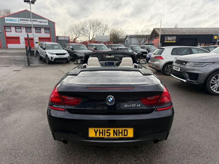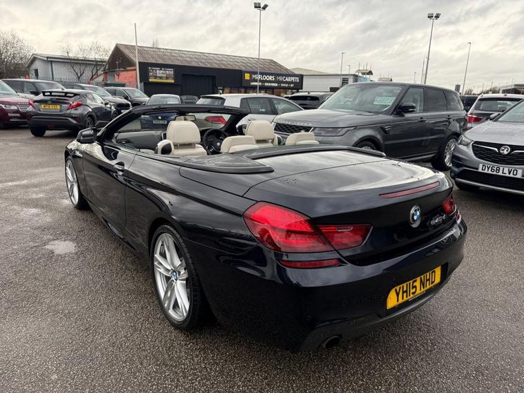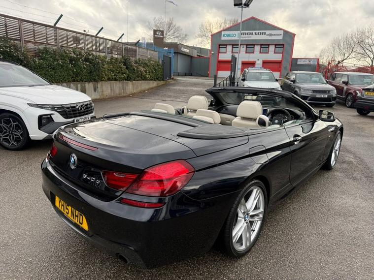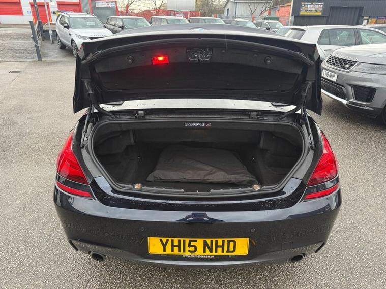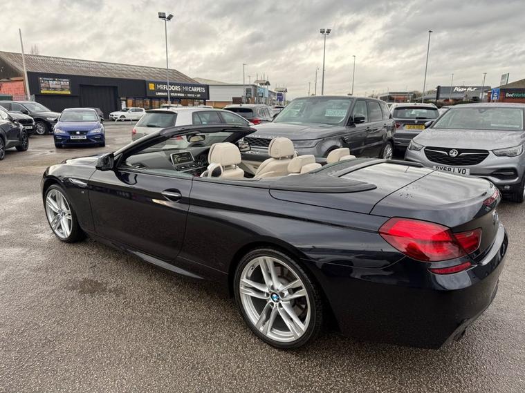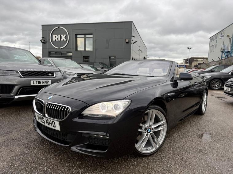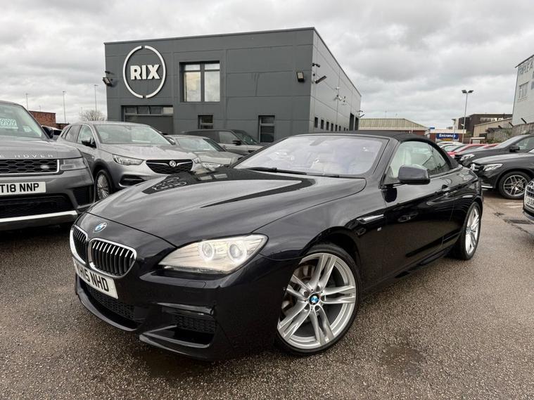 BMW 640D M SPORT CONVERTIBLE WITH factory extras worth £10, 960 FINISHED IN CARBON BLACK METALLIC WITH IVORY WHITE DAKOTA LEATHER-20 DOUBLE SPOKE ALLOYS-SOFT CLOSE DOORS-REVERSE CAMERA-SURROUND VIEW CAMERA-COMFORT SEATS-LUMBAR SUPPORT-HEATED SEATS-AMBIENT LIGHTING-AUTO HIGH BEAM ASSIST-PROFESSIONAL NAVIGATION-HEAD UP DISPLAY-DAB RADIO-HARMAN KARDON-DUAL ZONE CLIMATE CONTROL AND SERVICE HISTORY.Rix Motor Company is a family-owned business in Warrington that has been serving customers for over 45 years. We pride ourselves on our exceptional customer service, and our team is passionate about helping you find the perfect car to fit your needs.