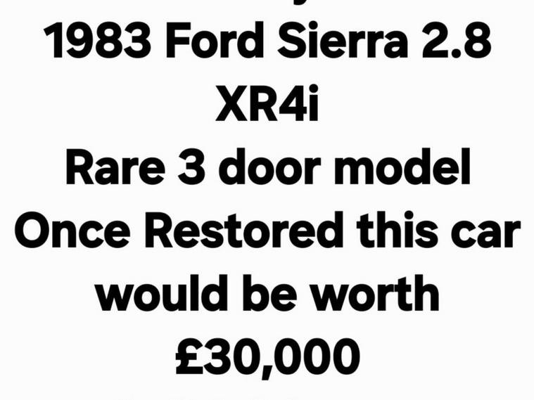 FORD SIERRA 3 DOOR 2.8 XR4i, Obviously this car is in need of a restoration, However it can be driven as its TAX & MOT Exempt, We have put a new battery on it, a new fuel pump and the engine is running fine, it would have to be trailed away. as its hard to get into gear, we assume the clutch cable need replacing. The obvious items need replacing is the Windscreen, and exhaust is blowing. THIS CAR IS SOLD AS A RESTORATION PROJECT AND DOES NOT COME WITH A WARRANTY