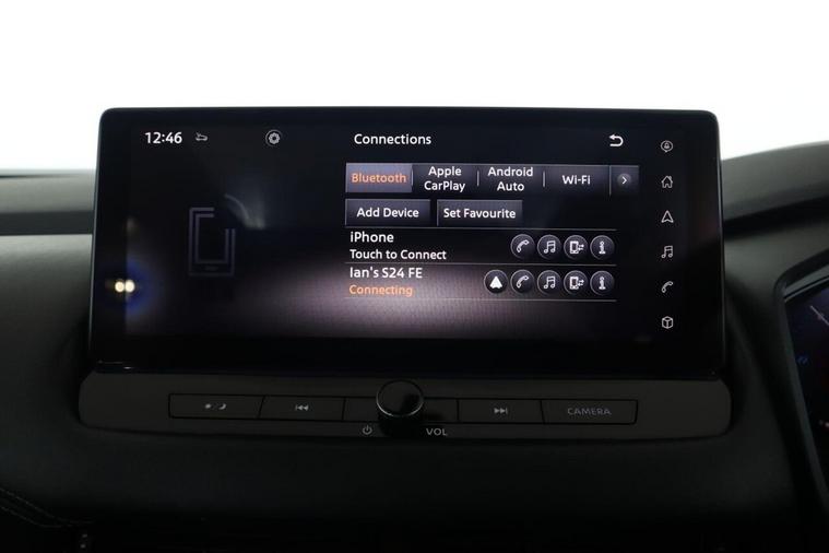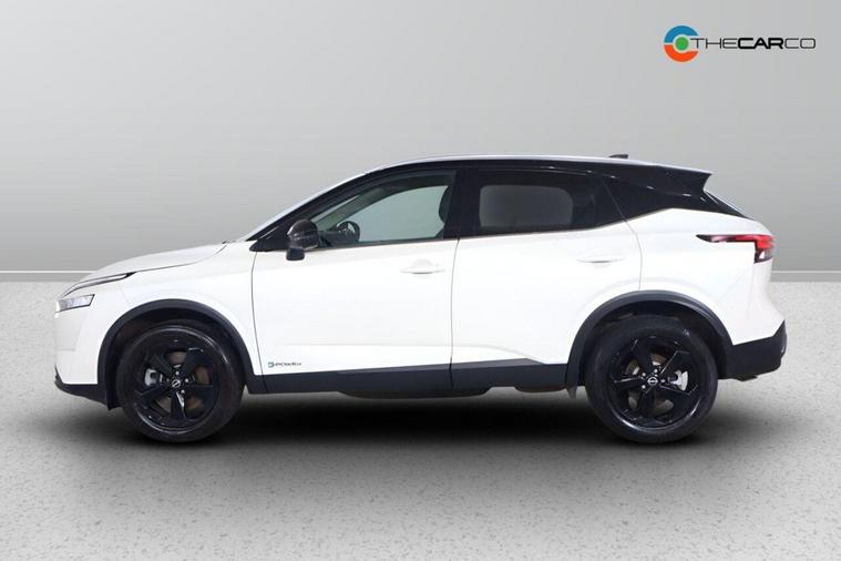 This 2023 Nissan Qashqai h e-POWER Kuro Edition is a superb example, having had only one owner since new. This stylish Kuro Edition variant boasts a 1.5 litre petrol hybrid engine, meeting Euro 6 emission standards. It comes equipped with a suite of intelligent features designed to enhance your driving experience, including Intelligent Cruise Control for effortless motorway journeys, Intelligent Around View Monitor with a 360 degree camera for confident parking, and Intelligent Blind Spot Intervention to help keep you aware of your surroundings. You'll also appreciate the convenience of a wireless phone charger and Bluetooth connectivity with audio streaming. The Qashqai h e-POWER Kuro Edition offers impressive performance, achieving 0-62mph in just 7.9 seconds, while its hybrid technology contributes to a remarkable fuel economy of 54 miles per gallon. This efficiency, combined with its low CO2 emissions, makes it a more environmentally conscious choice compared to many other vehicles in its class. Furthermore, you'll benefit from generous boot space, perfect for accommodating luggage or shopping, making this Qashqai a practical and appealing option for everyday use.