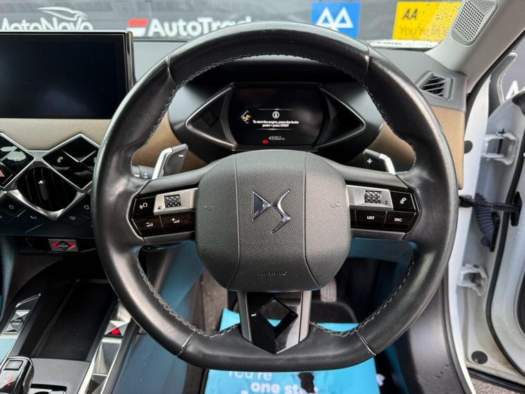 This 2019 DS 3 CROSSBACK PureTech Prestige offers a refined driving experience with its advanced technology and stylish design. Powered by a 1.2 litre petrol engine, this Euro 6 compliant model boasts impressive fuel efficiency and low CO2 emissions, making it an environmentally conscious choice. The Prestige trim level ensures a premium feel, complemented by features such as front and rear parking sensors with parking assistance, automatic air conditioning with climate control, and a Bluetooth handsfree system with USB connectivity for seamless media streaming. Experience effortless connectivity and entertainment with Mirror Screen, compatible with both Android Auto and Apple CarPlay, allowing you to access your favourite apps safely on the go. The DS 3 CROSSBACK PureTech Prestige accelerates from 0 to 60 miles per hour in just 8.2 seconds, demonstrating a responsive and engaging performance. These highlights collectively indicate a superior driving proposition compared to other vehicles in its class, offering a blend of sophistication, efficiency, and modern convenience.