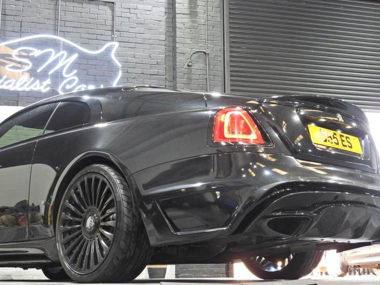 FULL ONYX CONVERSION STUNNING! We are proud to introduce for sale this Rolls Royce Wraith that benefits from a complete Onyx Concept exterior conversion that includes the rare option of a carbon fibre grille surround. The enhancements have only just been carried out by Onyx at their facility and the vehicle is presented with the balance of the Rolls Royce service pack and warranty along with Starlight Headlining and Driver Assistance Systems 3. Full details are outlined here of the Onyx Concept enhancements: Complete Front Bumper With Carbon Fibre Lower Splitter And LED Daytime Running Lights With Carbon Fibre Housings, Carbon Fibre Grille Surround, Sculpted And Vented Side Sills With Extended Carbon Fibre Element, Complete Rear Bumper With Carbon Fibre Diffuser Housing Branded Billet Aluminium Tailpipes, Full Exterior De-Chrome To Front Grille, Spirit Of Ecstasy, Door Handles, Window Surrounds, Taillight Trim And Boot Finisher, 22 Forged Roulette Alloy Wheels Finished In Gloss Black, Lowering Program And Exterior Branding.