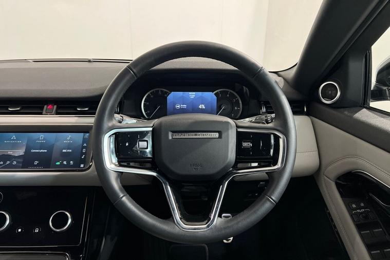 This 2023 Range Rover Evoque P300e R-Dynamic SE boasts exceptionally low mileage for its age, having covered just 11, 499 miles with only one owner. This Euro 6 compliant, four wheel drive model features a 1.5 litre petrol plug-in hybrid engine, offering an efficient and powerful driving experience. Its MOT is valid until January 2027, and it has a clear vehicle history check, providing peace of mind. Notable features include premium LED headlights with signature daytime running lights, keyless entry, and blind spot assist for enhanced safety and convenience. The interior is designed for comfort and sophistication, with 12-way heated electric driver memory seats and 10-way passenger seats, complete with rear centre armrest. The R-Dynamic SE trim level ensures a dynamic and engaging drive, further enhanced by Adaptive Cruise Control. This Evoque accelerates from 0-60mph in a swift 6.1 seconds, demonstrating its impressive performance capabilities which set it apart from other vehicles in its class.