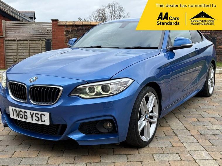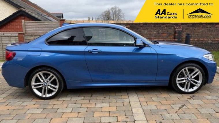 A FRESH WELL SERVICED 2 SERIES 218i M SPORT COUPE, THIS IS A 2 DOOR PETROL MANUAL EXAMPLE AND THIS IS A EURO 6 MODEL. WE HOLD A DETAILED SERVICE RECORD WITH A RECENT CHANGE OF TIMING CHAIN. WE HAVE A FEB 2027 MOT WITH NOT ONE ADVISORY AND WE HAVE DETAILED SERVICE RECORD AND INVOICES. THIS IS AN M SPORT MODEL AND SER COMES WITH M SPORT STYLING PACK. M SPORT SPORTS CLOTH SEATS, MANUAL GEARSHIFT, BLUETOOTH, NAVIGATION, CRUISE, MULTIFUNCTION M SPORT STEERING WHEEL, UNMARKED ALLOYS, TINTED GLASS, USB AND AUX PORTS. WE APPLY A 6 MONTH NATIONWIDE WARRANTY, A 12 MONTH AA BREAKDOWN COVER AND WE HAVE NATIONWIDE DELIVERY OPTIONS AVAILABLE. CALL FOR FURTHER DETAILS. 01625320973 WE ARE HERE TO HELP YOU. OPEN MONDAY - SATURDAY 8AM - 6PM WITH VIEWINGS BY APPOINTMENT. 01625320973.