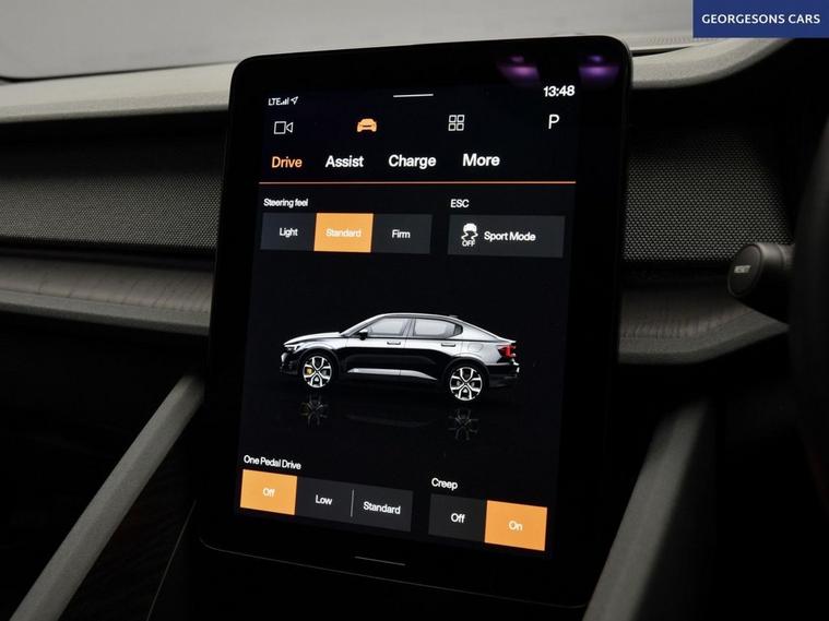 The Polestar 2 Single Motor 64kWh combines an efficient rear-mounted electric motor with 231hp, delivering 0-62mph in 7.4 seconds and up to 298 miles WLTP range in this rear-wheel-drive setup with a smooth single-speed automatic transmission. This premium electric fastback offers minimalist Scandinavian design with a high-tech interior. With one owner, this Polestar 2 is in excellent condition. Enjoy the expansive panoramic roof for an airy cabin feel, while integrated satellite navigation, Apple CarPlay, Bluetooth and DAB radio ensure seamless connectivity on every journey. Parking is effortless thanks to the 360-degree camera and parking sensors, providing comprehensive visibility and confidence in tight spaces. Stay comfortable with climate control and heated front seats, offering personalised warmth year-round. Adaptive cruise control with speed limiter, lane assist and blind spot assist enhance safety and relaxation on highways. Electric heated memory seats provide adjustable luxury. The sleek five-door fastback design includes a 405-litre boot (expandable to 1, 095 litres) for practicality