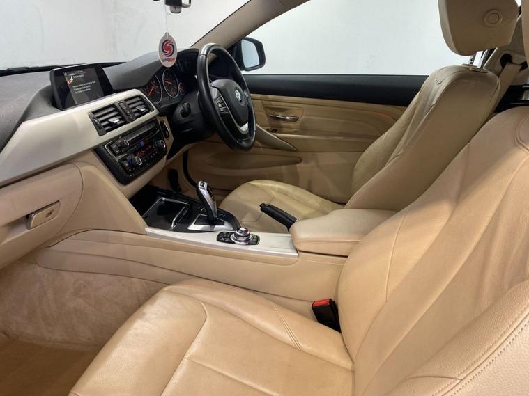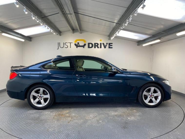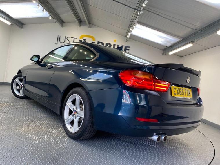 This outstanding BMW 4 Series offers a perfect blend of sporty performance and luxury and is available at a great price. It features a 2.0-litre diesel engine with an eight-speed automatic transmission providing a good balance of power and fuel efficiency with an impressive 187 Bhp and up to 78 mpg according to BMW. Fully colour coded in Midnight Blue metallic (a £645 factory option when new) the car has 17 M Sport alloy wheels, twin exhaust and a sporty but subtle boot spoiler. The high quality cabin features sports seats in full Dakota leather with 3 stage electric heating and are exceptionally clean and comfortable. BMWs iDrive system has navigation, DAB radio and as well as front / rear Park Distance Control with audio / optical alert. Dual zone climate control, cruise control and a leather multi-function steering wheel round off this highly equipped model.