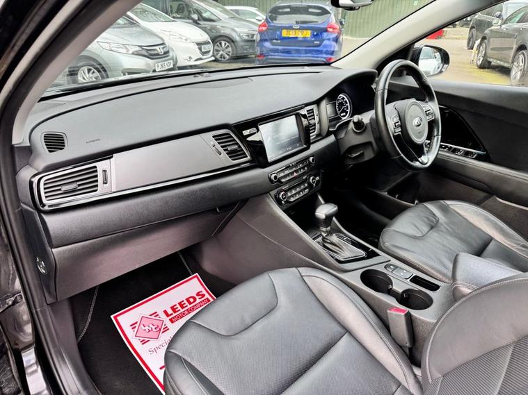 2017 Kia Niro 1.6 Petrol Hybrid Automatic with just 31, 000 miles from new. Only 1 owner and comes with full service history. High specification including: Satellite Navigation Apple CarPlay & Android Auto Heated Leather Seats Heated Steering Wheel Rear Parking Camera & Sensors DAB Radio Bluetooth Handsfree Paddle Shift Diamond Cut Alloy Wheels 2 Keys Smooth, economical hybrid drive with automatic gearbox perfect for town or motorway use