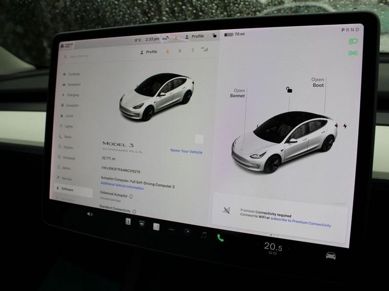 This 2021 Tesla Model 3 Standard Range Plus presents an exceptional opportunity with its remarkably low mileage of just 22768 miles for its age. As an electric vehicle, it boasts a 53 kWh battery offering a maximum range of 278 miles when new. Charging is convenient, with a full charge at home taking approximately 7 hours and 10 minutes using a 7kW charger, while rapid public charging can achieve 80% capacity in as little as 29 minutes from empty. This Model 3 also features a fixed panoramic glass roof, a Bluetooth connection, and air conditioning with two zone climate control for enhanced comfort. The practicality of this Tesla Model 3 is further enhanced by its large boot space, providing ample room for luggage or shopping. The inclusion of Park Assist with a front camera makes manoeuvring in tight spaces significantly easier. These features, combined with its efficient electric powertrain and low mileage, position this vehicle as a superior choice for those seeking a modern, capable, and economical driving experience.