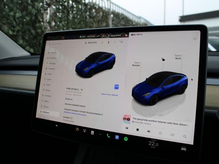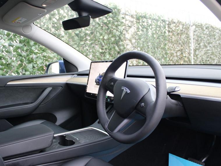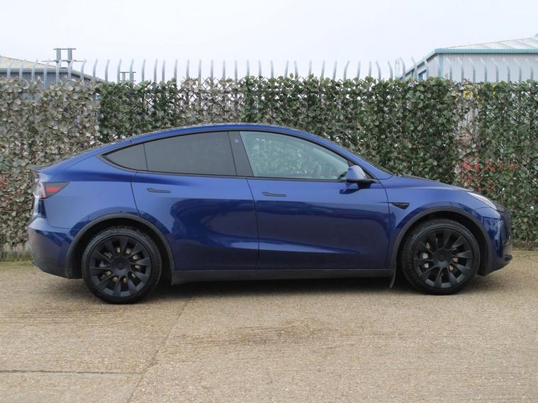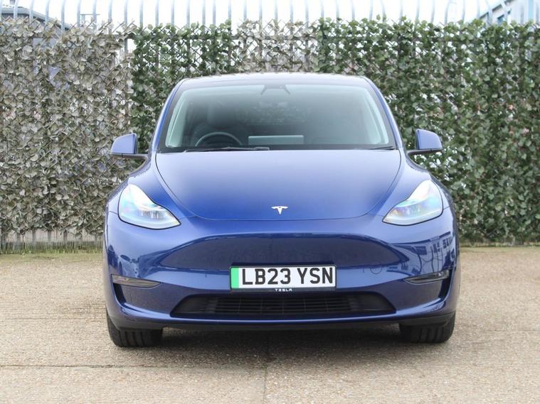 This 2023 Tesla Model Y Long Range boasts a single owner from new, offering a pristine example of electric innovation. As a Four Wheel Drive electric vehicle, it features an 85 kWh battery providing a maximum range of 331 miles. Charging at home on a 7kW charger takes approximately 12 hours, while rapid public charging can replenish the battery from empty to 80% in just 25 minutes. Inside, youll find a dual zone climate control system, heated rear seats for passenger comfort, and LED headlights for enhanced visibility. The Model Y also includes convenient features such as wireless phone charging and blind spot monitoring with blind spot assistance, ensuring a safer and more connected driving experience. The performance of this Model Y Long Range is truly impressive, with a rapid 0-60mph acceleration time of just 4.8 seconds, demonstrating its dynamic capabilities. This acceleration figure is significantly quicker than many other vehicles in its class, highlighting its advanced electric powertrain. Furthermore, the generous boot space offers excellent practicality for everyday use and longer journeys. With a maximum range of 331 miles, this Tesla Model Y is designed to go the distance, making it an ideal choice for those seeking an efficient and capable electric SUV.