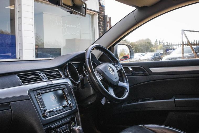 This Skoda Superb TDI Elegance from 2015 presents an exceptional ownership proposition, having been meticulously maintained by a single owner from new and boasting a remarkably low mileage of just 67, 200 miles. The car comes with 2 keys, Full Service History and will also have a fresh service from our in house technicians along with a minimum MOT of 8 months. The vehicle has undergone an extensive PDI check along with a 50 mile road test and performs as expected. Powered by a robust 2.0 litre diesel engine and featuring a capable four wheel drive system, this Superb offers a compelling blend of performance and efficiency. The Elegance trim ensures a refined driving experience, enhanced by features such as Bi-Xenon headlights for superior visibility, a Bluetooth telephone preparation system for seamless connectivity, and heated front seats for added comfort during colder journeys. The convenience of rear parking sensors and an automatic tunnel light further contribute to its user friendly design. This particular Superb stands out from others in its class due to several key advantages. Its impressive acceleration, achieving 0-60mph in just 8.5 seconds, demonstrates its lively performance. Furthermore, its classification within a low insurance group makes it an economical choice for many drivers. The Superb is renowned for its exceptionally large boot space, offering unparalleled practicality for luggage, shopping, or equipment, making it an ideal companion for families or those with active lifestyles.
