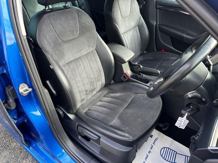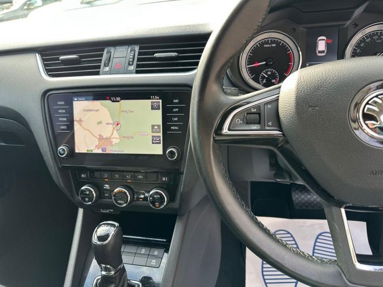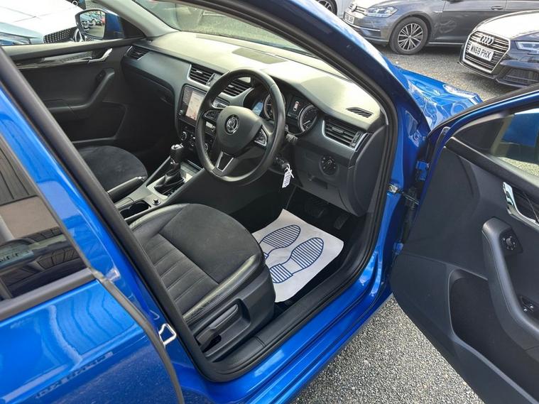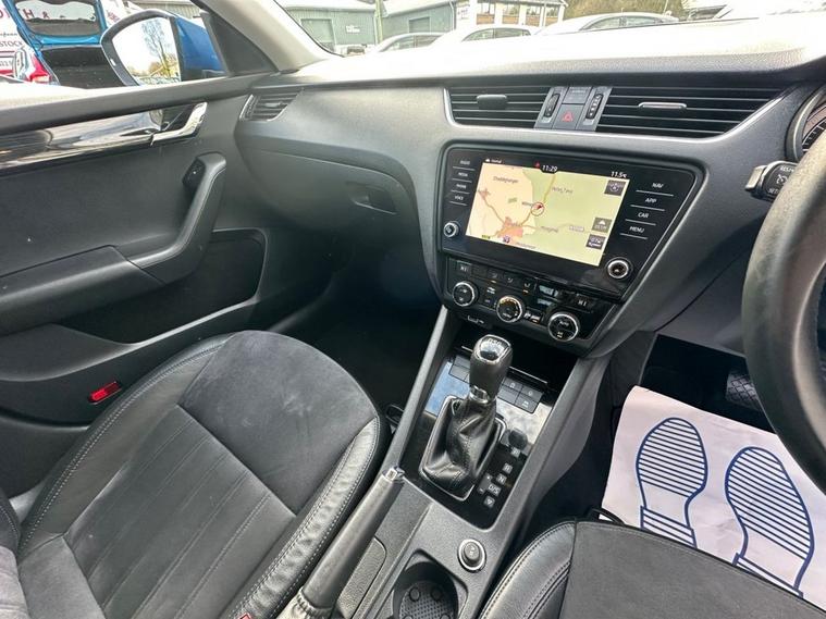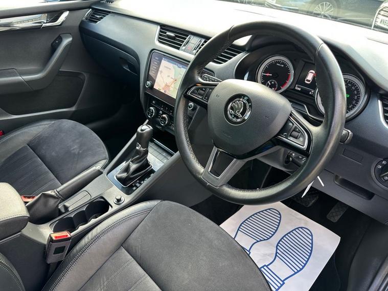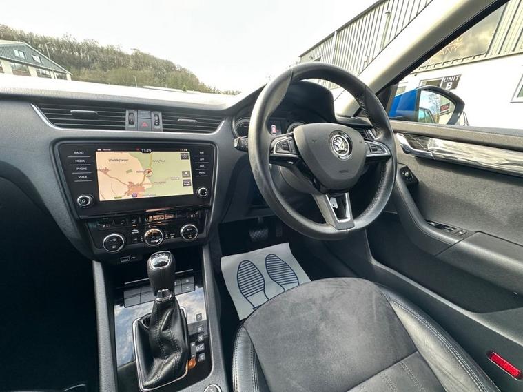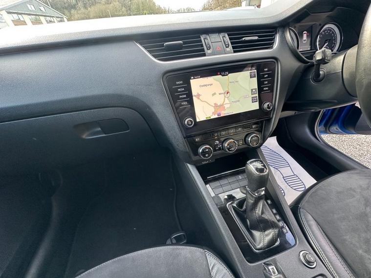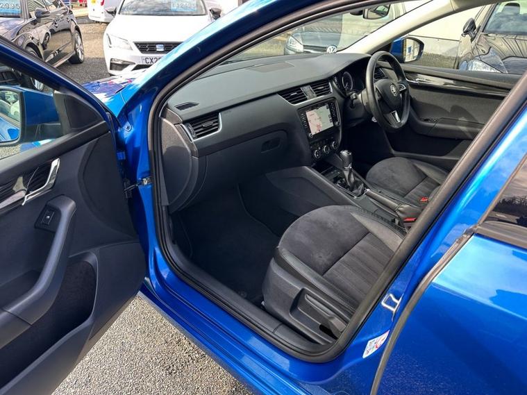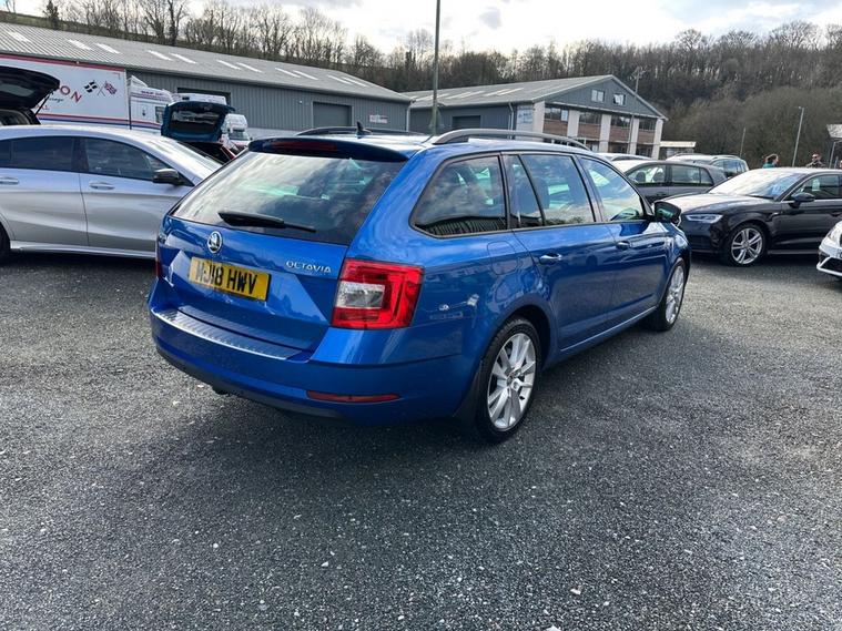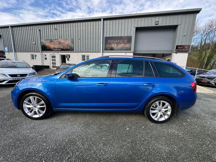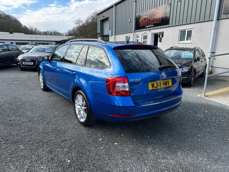 Southwest Motor Company are proud to be offering for sale this beautiful, one-owner 2018 Skoda Octavia TSI SE L Estate DSG Automatic. Finished in the fantastic Race Blue Metallic with full black half leather/suede interior and 17-inch alloy wheels finished in silver, this Octavia is a great-looking vehicle. A spacious cabin with ISO-Fix childseat anchors and a large boot make this a great family estate vehicle. This particular example also benefits from great specification, including satellite navigation, DAB radio, Apple CarPlay/Android Auto smartphone connectivity, Bluetooth (phone & Music), parking sensors (front/rear), dual-zone climate control, electric window, electrilaclly operated/folding wing mirrors, mutifunction steering wheel and crusie control which ensure its a brilliantly comfortable vehicle to drive and travel in. The 1.5L petrol engine offers brilliant performance and economy, which is delivered through a silky-smooth 7-speed automatic DSG transmission. With an impressive 65 mpg achievable on a run, together with this vehicle being ULEZ COMPLIANT, ensure its fantastically cheap to own and run. A beautiful one-owner example with a full service history, great specifications and brilliant all-round economy. Supplied serviced with a long MOT and 3-month premium warranty (extendable if desired). Part-exchange welcome. All our vehicles are HPI clear. All major debit cards are accepted. Great finance packages are available to suit all customer profiles. The vehicle specification displayed may not be exact for this vehicle. Please contact us to confirm the precise specifications