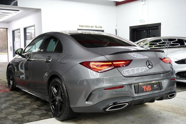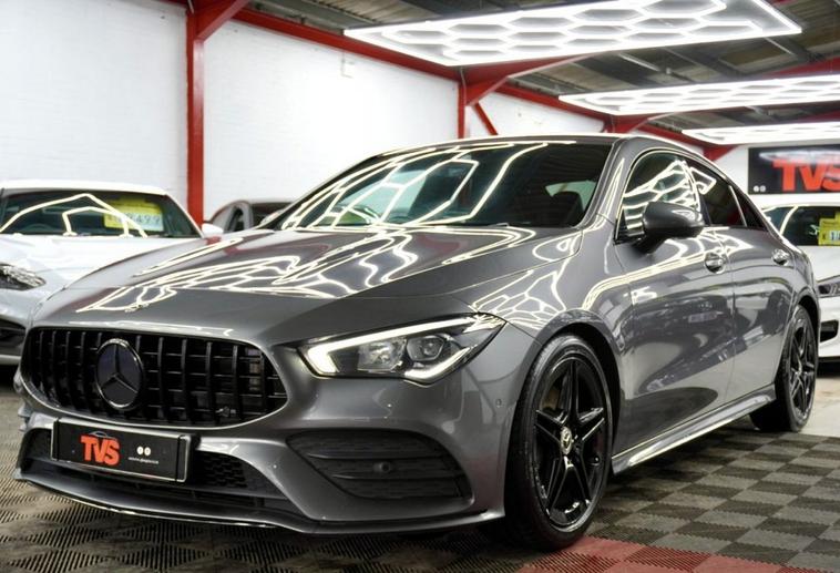 2019/69 MERCEDES-BENZ CLA 1.3 CLA200 AMG Line Coupe 4dr Petrol 7G-DCT Euro 6 - 7 Speed Auto - Mountain Grey with two tone Black and Red leather - only 2 former keeper - 2 remote keys - Mercedes main dealer service history - just serviced for sale by independent Mercedes specialist with Mercedes DSR updated - fresh 12 months MOT with no advisories - Platinum warranty - full 12 months AA roadside assistance also included! Night Package! Black Alloy Wheels! CLA 45 AMG Aero rear spoiler! AMG GT grill! Ambient Lighting! Apple CarPlay/Android Auto!