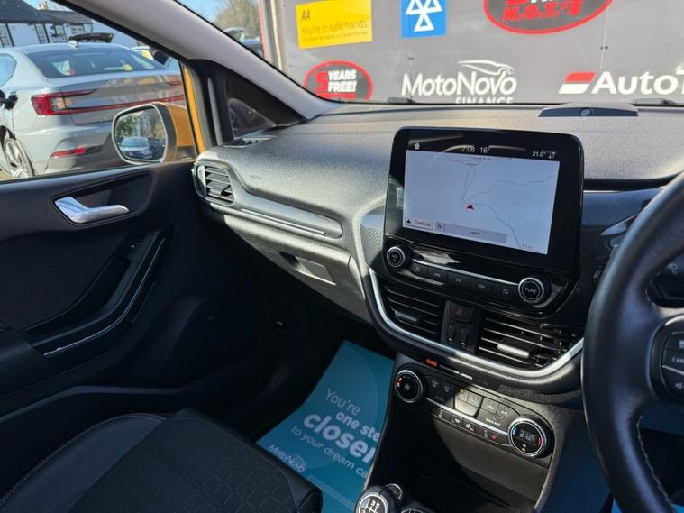 This 2018 Ford Fiesta T Active X presents an exceptional opportunity with its remarkably low mileage of just 24, 000 miles. As a Euro 6 compliant model, this 1.0L petrol hatchback offers an efficient driving experience, boasting an impressive fuel economy of 57 miles per gallon. The Active X trim level ensures a well equipped interior, featuring the convenient Ford KeyFree System for keyless entry, and Electronic Automatic Temperature Control for effortless climate management. Navigating your journeys is made simple with the Ford Navigation System, complete with Ford SYNC 3 integration that supports both Apple CarPlay and Android Auto. Further enhancing your comfort and convenience, this Fiesta includes heated seats for both the driver and passenger, perfect for colder mornings. The automatic on-off headlights add an extra layer of ease to your driving. When compared to similar vehicles, this particular Ford Fiesta stands out due to its low CO2 emissions and a brisk 0-60mph acceleration time of 10.6 seconds, demonstrating a pleasing balance of economy and performance. A 3 month warranty is included, providing peace of mind with your purchase.