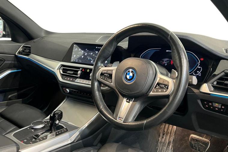 This 2022 BMW 330e M Sport offers exceptional value with a clear vehicle history and MOT valid until January 2027. This Euro 6 compliant plug in hybrid boasts a 2.0L petrol engine and has been owned by only one person. Inside, you will find the M Sport trim enhanced by the Technology Plus Pack and Comfort Pack, which includes a heated steering wheel. The Vernasca leather upholstery in black with blue contrast stitching adds a touch of luxury, while the Parking Assistant Plus, featuring a 360 degree camera and front and rear sensors, makes manoeuvring effortless. Experience the dynamic performance of this 330e M Sport, capable of accelerating from 0 to 60mph in just 5.9 seconds. This impressive acceleration, combined with its plug in hybrid technology, demonstrates how this vehicle offers a superior driving experience compared to many others in its class. The inclusion of the Technology Plus Pack and Comfort Pack further elevates its appeal, providing advanced features and enhanced driver comfort.