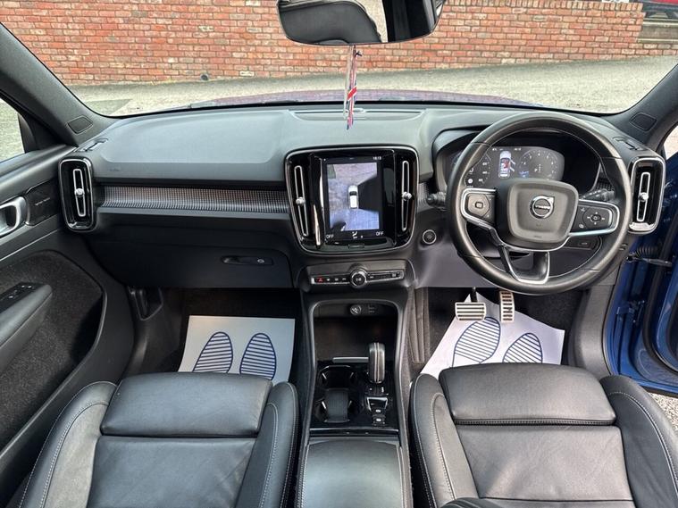 Electric panoramic sunroof : Fully stamped service book (please see phtoso) : 2 Keys : Bluetooth : Satellite Navigation system : DAB Radio : Quality full leather upholstery : Isofix fittings : Air-conditioning : Cruise control/Speed limiter : Auto headlights/wipers : Harman/Kardon sound system : Volvo Drive-Mode selector:- Eco/Comfort/Off-Road/Dynamic : Volvo Lane-Keeping aid : Volvo Blind-Spot information system : Volvo Park-Assist system : 360 Degree camera system : Front and rear parking sensors : Remotely operated tailgate : Rear privacy glass : Roof-Rails : 18-inch alloy wheels : Distinctive Bursting blue paintwork : Please go to dealer's website to see more vehicles like this.................................... This 2020 Volvo XC40 T3 R-Design offers a premium driving experience with its stylish R Design trim and a responsive 1.5 litre petrol engine. As a Euro 6 compliant vehicle, it meets modern emission standards. Inside, youll find the Sensus Connect system featuring a Premium Sound by Harman Kardon audio system, ensuring your journeys are accompanied by exceptional sound quality. The Lounge Pack enhances comfort and convenience, including Android Auto and Apple CarPlay for seamless smartphone integration, a 360 degree parking camera, and front and rear parking sensors. Furthermore, the Intellisafe Surround system with Blind Spot Assistance provides an extra layer of safety. The XC40 T3 R Design boasts a power glass tilt and slide panoramic sunroof, allowing you to enjoy the open sky. This model accelerates from 0 to 60 miles per hour in just 9.1 seconds, demonstrating its capable performance. The inclusion of Android Auto and Apple CarPlay, alongside a USB hub, highlights its advanced connectivity, making it a well equipped choice compared to other vehicles in its class.