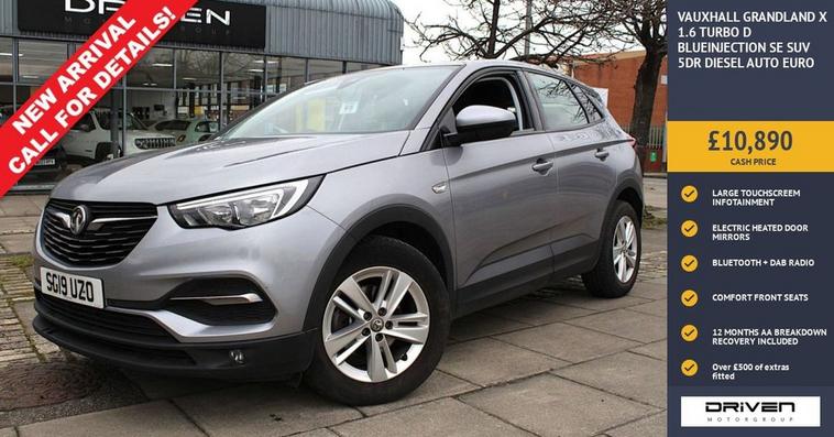 VAUXHALL GRANDLAND X 1.6 TURBO D BLUEINJECTION SE FINISHED IN GREY AND COMPLIMENTED WITH TWO TONE CHARCOAL INTERIOR, THIS VEHICLE HAS BEEN VERY WELL CARED FOR AND MAINTAINED WITH DOCUMENTED SERVICE HISTORY CARRIED OUT AT 9563, 14863, 22676, 26133, 31894, 38073, 43444 MILES PLUS COMPREHENSIVE PRE DELIVERY HEALTH CHECK COMPLETED PRIOR TO SALE AT 43785 MILES. KEY FEATURES INCLUDE ALLOY WHEELS, AUTOMATIC LIGHTS, AUTO DIMMING REAR VIEW MIRROR, COMFORT FRONT SEATS, CRUISE CONTROL WITH SPEED LIMITER, DUAL ZONE CLIMATE CONTROL, LANE ASSIST, TOUCHSCREEN INFORMATION SYSTEM, REAR PARKING SENSORS, ALARM, STEERING WHEEL MOUNTED AUDIO CONTROLS, TINTED WINDOWS, HEATED DOOR MIRRORS, WELCOME LIGHTING, BLUETOOTH, AUX IN, DAB RADIO PLUS MUCH MORE. COMMITTED TO AA CARS STANDARDS: 3 MONTHS OR 3000 MILES WARRANTY INCLUDED WITH AN OPTION TO UPGRADE: 12 MONTHS AA BREAKDOWN RECOVERY INCLUDED: £75.00 CONTRIBUTION TOWARDS YOUR NEXT SERVICE/MOT AT ANY AA CARS STANDARD APPROVED WORKSHOP: WE STAND BY THE QUALITY OF OUR VEHICLES. WITH THE PURCHASE OF THIS VEHICLE, YOU WILL RECEIVE 3 MONTHS OR 3000 WARRANTY, 12 MONTHS AA BREAKDOWN RECOVERY, GIVING YOU ADDITIONAL PEACE OF MIND AND PROTECTION. ALL OUR CARS COME WITH AT LEAST 6 MONTHS MOT AND PRE SALE HEALTH CHECK AND ROAD TEST. OUR PROFESSIONAL TEAM ENSURES YOUR VEHICLE STAYS IN TOP CONDITION, AND YOU ENJOY A HASSLE-FREE OWNERSHIP EXPERIENCE. 4.7 STARS ON GOOGLE WITH OVER 550 REVIEWS: JOIN OUR COMMUNITY OF SATISFIED CUSTOMERS! OUR DEALERSHIP IS PROUD TO HAVE A 4.7 STAR RATING ON GOOGLE, BACKED BY OVER 550 POSITIVE REVIEWS. WE ARE COMMITTED TO PROVIDING EXCELLENT SERVICE AND HIGH-QUALITY VEHICLES. This Vehicle Comes Equipped with High Specification, Which Includes: -