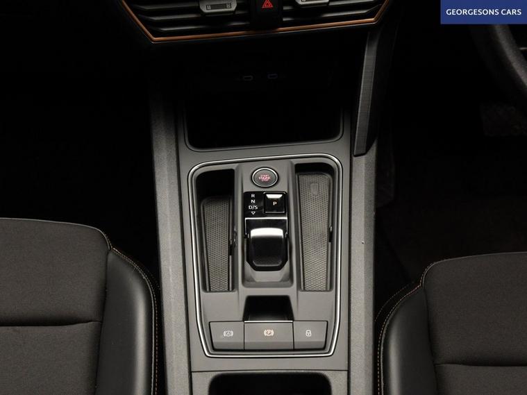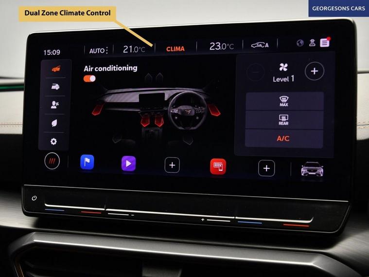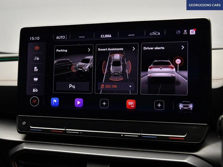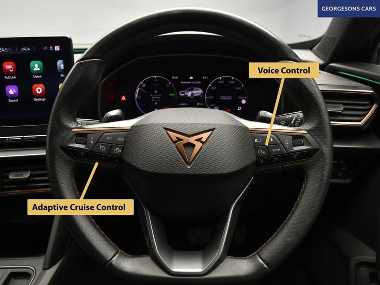 The Cupra Formentor 1.4 eHybrid V1 combines a 1.4-litre turbo petrol engine with an electric motor for a total 245hp, delivering 0-62mph in 7.0 seconds, up to 38 miles pure-electric range and an official 188mpg in this front-wheel-drive setup with a smooth 6-speed DSG automatic transmission. The V1 trim is the well-equipped mid-to-top specification with sporty styling and a premium interior. Enjoy the stylish cabin with ambient lighting, while Apple CarPlay, Bluetooth, DAB radio and satellite navigation keep you connected. Parking is easy with parking sensors. Stay comfortable with dual-zone climate control. Paddle-shift gears, cruise control with speed limiter deliver refined performance and relaxed driving. The spacious five-door SUV includes a 450-litre boot for practicality.