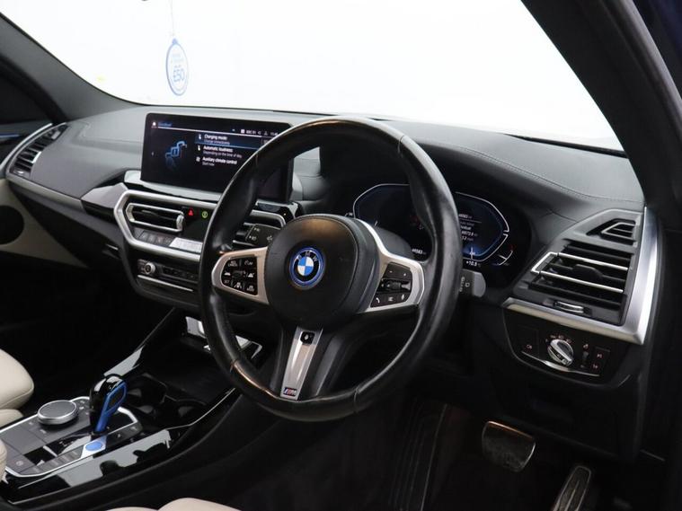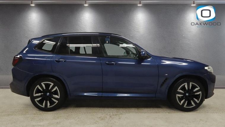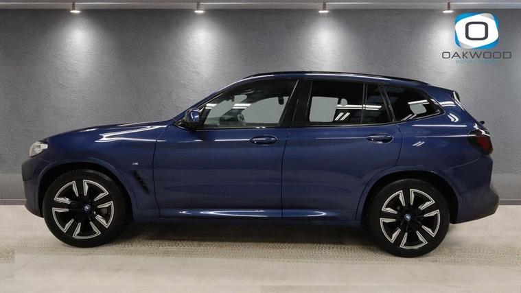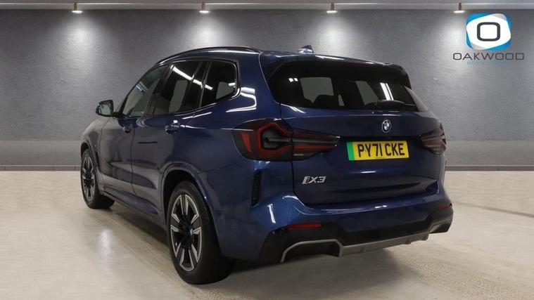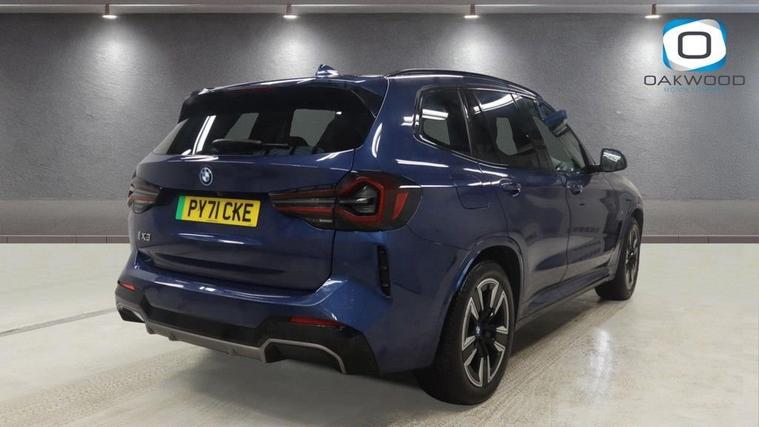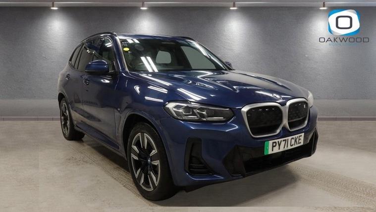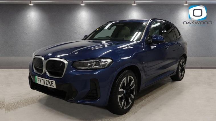 This 2021 BMW iX3 M Sport offers exceptional peace of mind with its MOT valid until November 2026. As an electric vehicle, it boasts a substantial 80 kWh battery capacity, providing a maximum range of 285 miles when new. This M Sport variant comes equipped with a suite of advanced features, including the Parking Assistant with rear camera and sensors, automatic air conditioning with climate control, and an opening panoramic glass sunroof. For enhanced convenience, it features adaptive LED headlights and enhanced Bluetooth with wireless phone charging. Experience impressive performance with the BMW iX3 M Sport, capable of accelerating from 0 to 60 mph in just 6.8 seconds, demonstrating its dynamic capabilities. Charging is flexible, with a full charge at home using a 7kW charger taking approximately 11 hours and 20 minutes, while rapid public charging can take the battery from empty to 80% in as little as 32 minutes. The generous boot space ensures practicality for all your needs, making this electric BMW a compelling choice for those seeking efficiency, performance, and advanced technology.