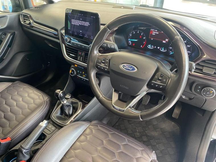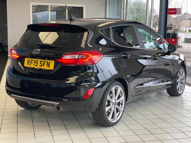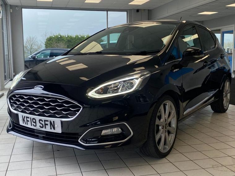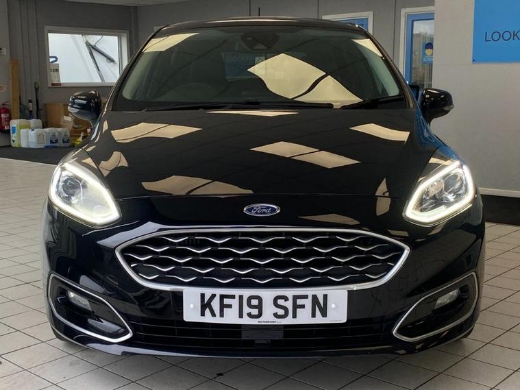 This 2019 Ford Fiesta Vignale is presented with a clear vehicle history check, offering you peace of mind. This T Vignale model is equipped with a 1.0 litre petrol engine and meets Euro 6 emissions standards, contributing to its low CO2 emissions. Key features include the Comfort Pack, which provides heated seats and a heated steering wheel for those colder journeys. Youll also benefit from the Ford KeyFree System for keyless entry, automatic headlights that switch on and off and manage high beams, and rear parking distance sensors to assist with manoeuvring. Experience enhanced connectivity and entertainment with the B and O PLAY premium sound system, integrated with the Ford SYNC 3 Navigation System. This system supports both Android Auto and Apple CarPlay, allowing seamless smartphone integration, alongside Bluetooth connectivity. The FordPass Connect embedded modem keeps you connected on the go. This Fiesta Vignale accelerates from 0 to 60mph in 10.0 seconds, demonstrating its responsive performance. These features collectively highlight how this vehicle offers a superior driving experience compared to other similar models.