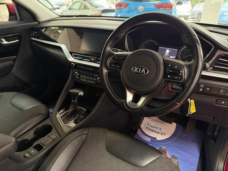 This 2020 (20) Kia Niro 1.6 GDi 2 Petrol Hybrid DCT (139bhp) is a superb choice if you want SUV practicality with hybrid efficiency and an easy-to-drive automatic gearbox. Finished in red with 32, 500 miles, its Euro 6 / ULEZ compliant and returns an impressive quoted 58.9mpg combined, making it ideal for commuting and longer journeys. On the road its smooth and relaxed, with 060mph in 11.1 seconds and a top speed of 101mphperfectly suited to everyday driving while keeping running costs sensible. Specification highlights include Adaptive Smart Cruise Control with Stop & Go, Apple CarPlay & Android Auto, 8 touchscreen, reversing camera, rear parking sensors, lane keep assist / lane follow assist, dual automatic air conditioning, privacy glass, and roof rails.