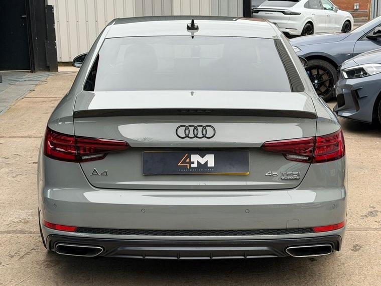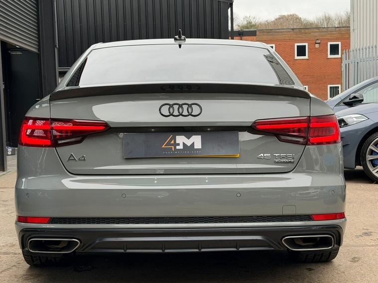 This 2019 Audi A4 TFSI Black Edition boasts a full service history, offering peace of mind alongside its impressive performance. This four wheel drive model is powered by a 2.0 litre petrol engine and meets Euro 6 emissions standards. It comes equipped with a Comfort and Sound Package, featuring keyless entry and a luxury branded sound system, alongside a rear view camera for enhanced parking assistance. Further convenience is provided by the Audi Phone Box with wireless charging and a Bluetooth interface for seamless connectivity. The striking LED headlights with dynamic rear indicators ensure excellent visibility. The Audi A4 TFSI Black Edition offers a compelling driving experience, highlighted by its brisk 0-60mph acceleration in just 5.8 seconds. This performance, combined with its advanced features and comprehensive service history, positions it favourably against similar vehicles. A 6 month warranty is also included, providing additional reassurance for the new owner.