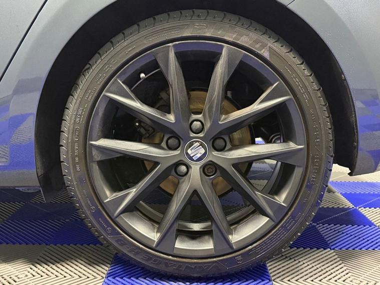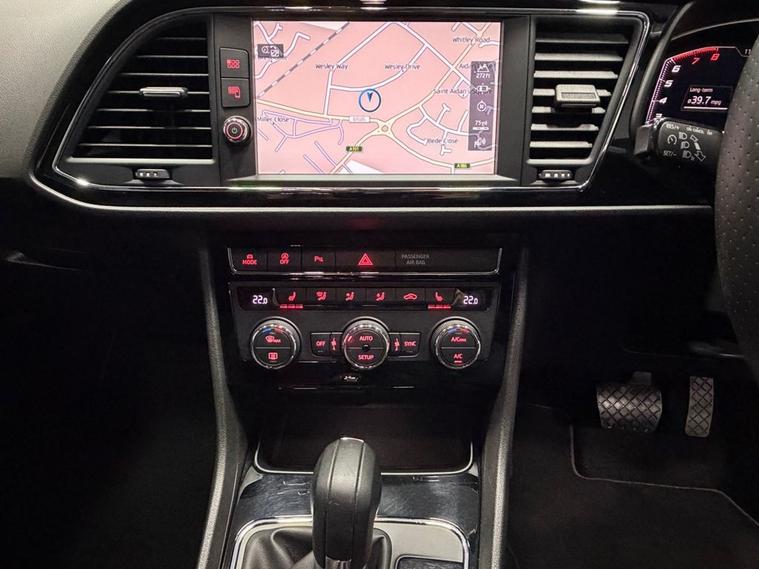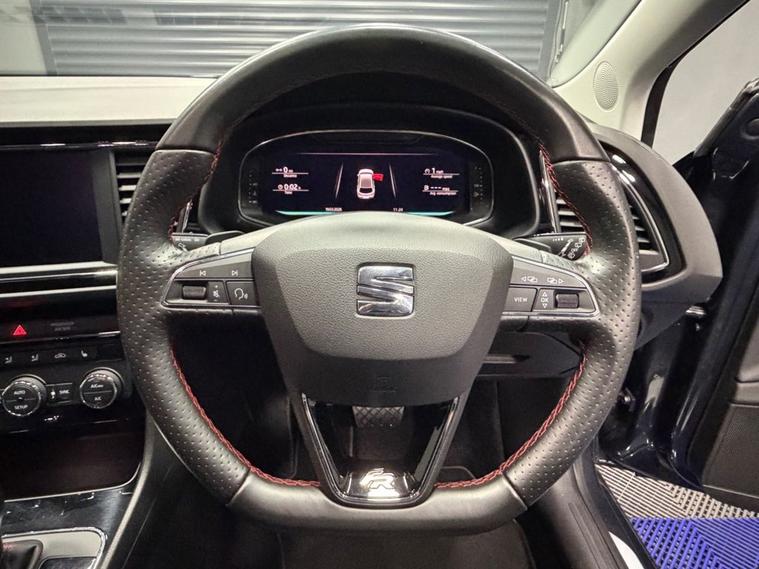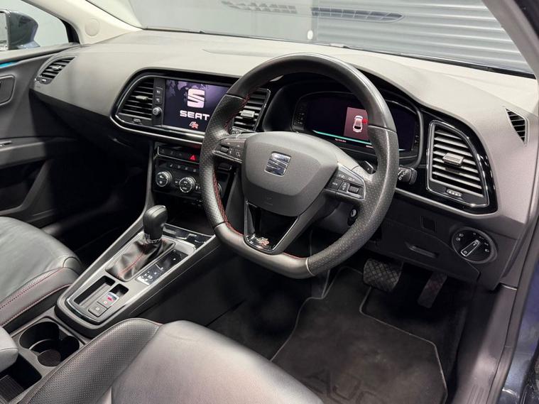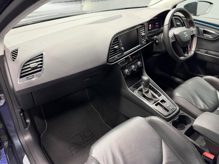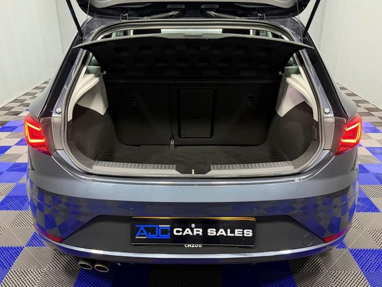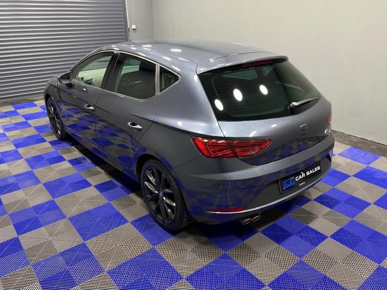 AJC Car Sales presents the SEAT LEON 1.5 TSI EVO FR Sport Hatchback 5dr Petrol DSG Euro 6 (s/s) (150 ps) finished off in Magnetic Grey with 18 Black Alloy Wheels, Two Keys and a great Service Record. The 2019 SEAT Leon 1.5 TSI EVO FR Sport Hatchback is a stylish and dynamic five-door petrol hatch that perfectly balances performance, efficiency, and everyday practicality. Powered by a responsive 1.5-litre TSI EVO turbocharged engine producing 150 PS, and paired with a smooth 7-speed DSG automatic gearbox, it delivers confident acceleration, refined cruising, and impressive fuel efficiency of up to around 4548 mpg combined. Finished in the sporty FR Sport trim, this model benefits from an athletic exterior design with sharp body styling, FR-specific bumpers, and striking alloy wheels, giving it a distinctive road presence. Inside, the cabin offers a premium feel with sports seats, a flat-bottomed steering wheel, and a driver-focused layout, complemented by a fully digital cockpit and intuitive infotainment system with smartphone integration including Apple CarPlay and Android Auto. Designed with both comfort and safety in mind, it comes equipped with advanced driver assistance features such as front assist with autonomous emergency braking, lane assist, cruise control, and front and rear parking sensors, ensuring a confident and secure driving experience. With a practical 380-litre boot capacity and five-door versatility, the Leon is perfectly suited to both daily commuting and longer journeys, while its Euro 6 (s/s) compliant engine ensures lower emissions and running costs. Combining sporty performance, modern technology, and everyday usability, this SEAT Leon FR Sport represents an excellent choice for drivers seeking a well-equipped and engaging hatchback.