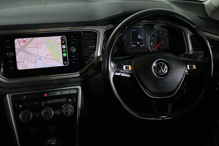 This well maintained Volkswagen T-Roc SE finished in Urano Grey looks fantastic complemented by 17 inch Alloy Wheels. Keep connected to your Phones APPS including SATELLITE NAVIGATION with APPLE CARPLAY, ANDROID AUTO and MIRROR LINK. Park in ease with FRONT & REAR PARKING SENSORS. Listen to your music through DAB Digital Radio. Keep connected with BLUETOOTH Phone System. Comfortable to drive with Dual-Zone CLIMATE CONTROLLED AIR CONDITIONING and ADAPTIVE CRUISE CONTROL. Safe to journey with City Emergency Braking and Lane Assist. Well equipped with Power-Fold Door Mirrors, Auto Headlights and Rain-Activated Wipers. Also fitted with ISOFIX seats, Multifunctional Steering Wheel, Immobiliser, Alarm and Remote Door Locking. Buy in confidence with JUST 2 OWNERS from new and FULL SERVICE HISTORY with 6 x Documented Services.
