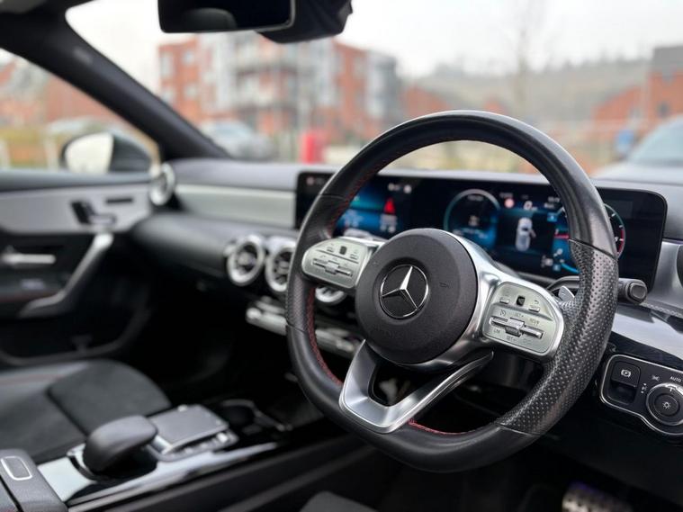 This 2021 Mercedes-Benz A Class A180d AMG Line (Premium Plus) boasts an exceptionally low mileage of just 17, 500 miles, coupled with a full dealership service history and a clear vehicle history check, offering peace of mind for its next owner. This Euro 6 compliant model features a 2.0L diesel engine and the sporty AMG Line trim, enhancing its appeal. Notable features include a panoramic glass sunroof with opening function, advanced MULTIBEAM LED headlights with adaptive highbeam assist, electrically adjustable front memory seats with lumbar support, traffic sign assist, and KEYLESS-GO for effortless locking and unlocking. The A180d AMG Line (Premium Plus) stands out with its impressive acceleration, reaching 0-60mph in a brisk 9.5 seconds, demonstrating its dynamic performance. Furthermore, its placement in a low insurance group makes it a more economical choice to own and run compared to many other vehicles in its class. These highlights collectively underscore the exceptional value and refined driving experience this Mercedes-Benz A Class offers.