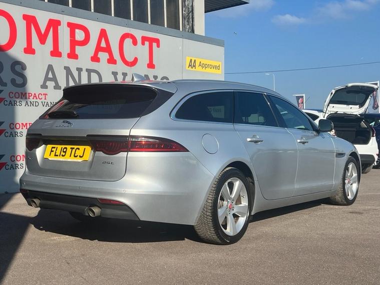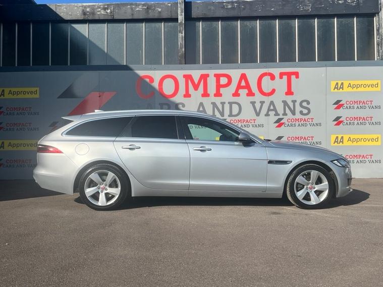 Just arrived at Compact Cars and Vans this outstanding 2019 Jaguar XF Sportbrake Portfolio GPF. This stunning example has covered just under 67, 900 miles and is presented in exceptional condition throughout, with only one previous owner. Powered by Jaguars trusted 2.0-litre petrol engine paired with a smooth automatic gearbox, the XF delivers a refined, responsive, and comfortable driving experience whether on long motorway journeys or everyday driving. The Portfolio specification offers a premium interior with five spacious and comfortable seats, generous legroom, and ISOFIX mounting points, making it ideal for families travelling with children. Key features include: parking camera, Parking sensors, Satellite navigation, Speed limiter, Cruise control, Heated seats, Paddle shift gears, Sport and Eco drive modes, Steering wheel-mounted controls and much more. The Jaguar XF Sportbrake is the perfect blend of luxury, practicality, and performance, offering the versatility of an estate car with the premium refinement you expect from Jaguar.