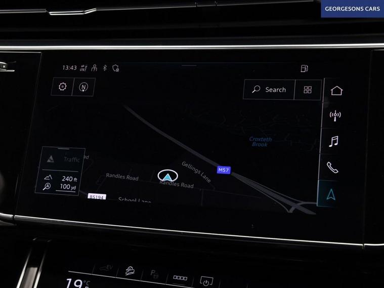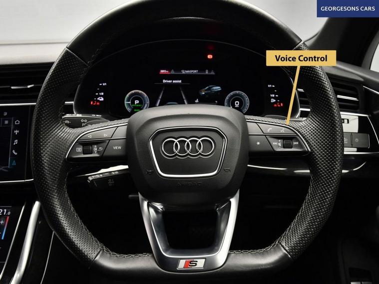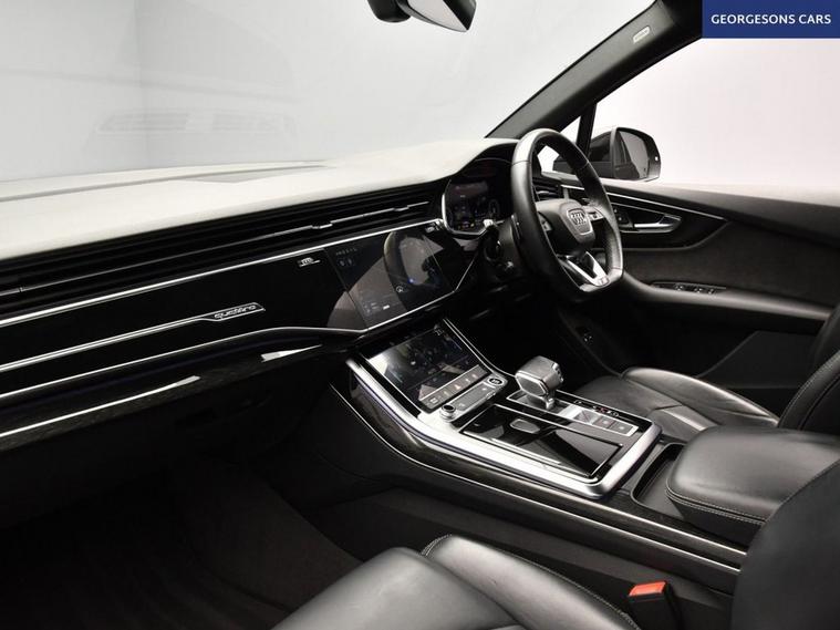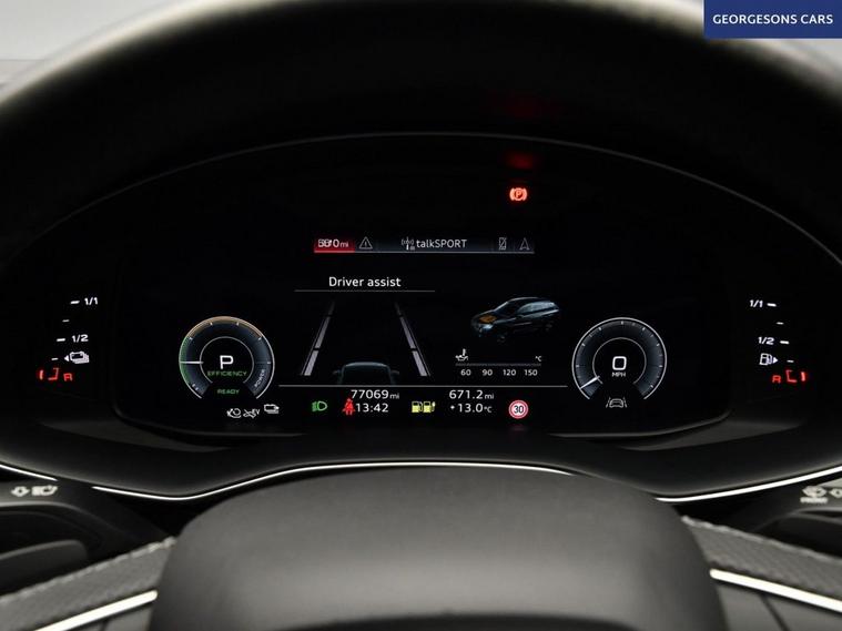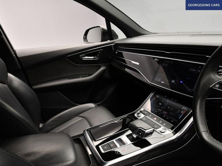 The Audi Q7 3.0 TFSIe 55 Black Edition combines a powerful 3.0-litre V6 turbo petrol engine with an electric motor for a total 456hp, delivering 0-62mph in 5.4 seconds, up to 27 miles pure-electric range and an official 112mpg in this permanent quattro all-wheel-drive setup with a silky 8-speed Tiptronic automatic transmission. The Black Edition is the striking top-spec trim with gloss-black styling, a premium interior. With one owner, this Q7 is in excellent condition. Navigate effortlessly with integrated satellite navigation, Apple CarPlay, Bluetooth and DAB radio. Parking is a breeze thanks to the reverse camera and parking sensors. The electric tailgate adds daily convenience. Stay comfortable with dual-zone climate control and electric heated memory seats. Cruise control with speed limiter, paddle-shift gears and lane assist enhance control and safety on every journey. The spacious five-door SUV includes a huge 865-litre boot.