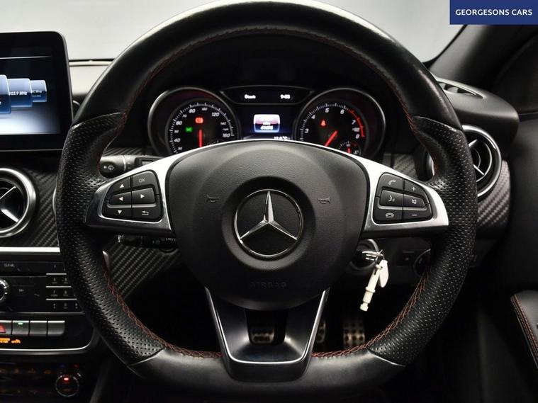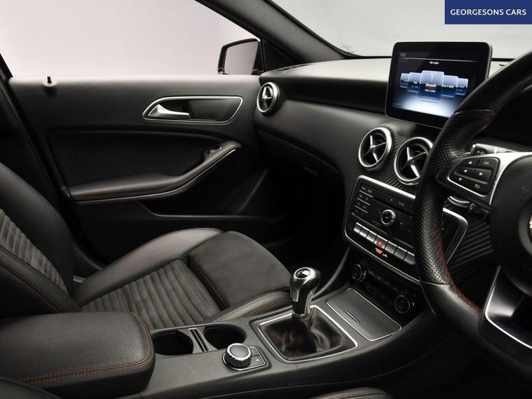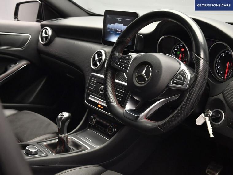 The Mercedes-Benz A180 AMG Line combines a responsive 1.6-litre turbo petrol engine with 122hp, delivering 0-62mph in 8.8 seconds and up to 49.6mpg in this front-wheel-drive setup with a precise 6-speed manual transmission. The AMG Line trim brings sporty styling with 18-inch alloy wheels, lowered suspension and premium interior. With seven services, this A-Class is in excellent condition. Navigate effortlessly with Apple CarPlay, Bluetooth and DAB radio. Parking is a breeze thanks to the reverse camera and parking sensors. Stay comfortable with dual-zone climate control. Cruise control with speed limiter enhances relaxation on highways. The practical five-door hatchback design includes a 370-litre boot for everyday practicality. Contact us today to test drive this well-serviced AMG Line A-Class!