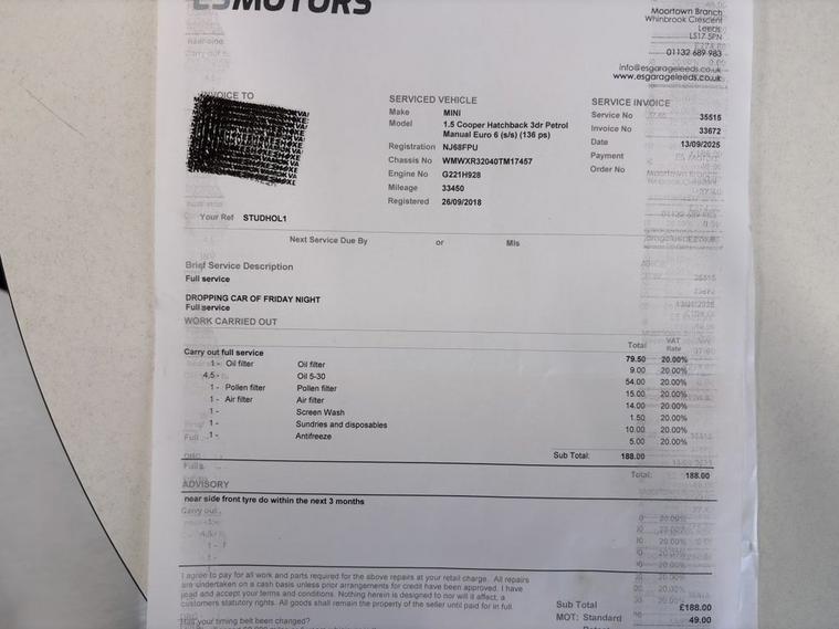 This 2018 MINI Hatch Cooper boasts exceptionally low mileage for its age, having covered just 36, 000 miles. This particular example is a Euro 6 compliant 1.5 litre petrol model, presented in the Cooper trim and benefiting from a clear vehicle history check. It comes equipped with the desirable John Cooper Works Sport Pack, enhancing its sporty appeal. Inside, youll find a well appointed cabin featuring navigation with Apple CarPlay and Bluetooth connectivity, complemented by stylish black bonnet stripes, darkened rear glass, and a sophisticated anthracite headlining. Experience the spirited performance of this MINI Hatch Cooper, which accelerates from 0 to 60 miles per hour in a brisk 7.9 seconds. This impressive acceleration, combined with its low mileage and the sought after John Cooper Works Sport Pack, sets it apart from other vehicles in its class. The inclusion of Apple CarPlay and Bluetooth ensures seamless connectivity for your devices, making every journey more enjoyable.