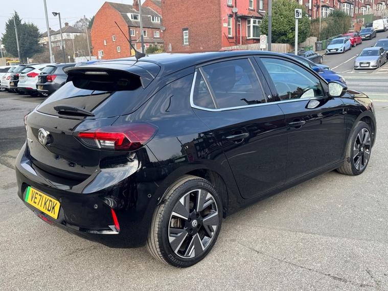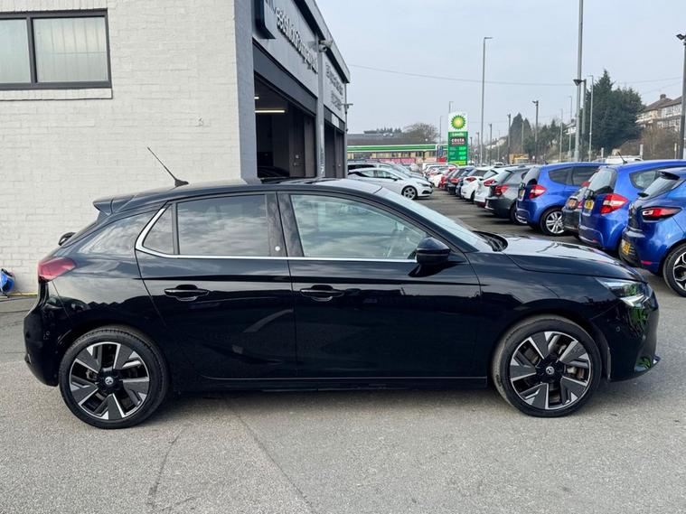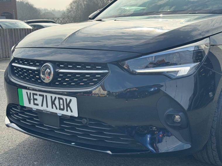 This 2021 Vauxhall Corsa Electric Elite Premium has had only one owner since new, offering a superb example of this popular electric hatchback. With a total battery capacity of 50 kWh, it provides a maximum range of 170-210 miles when fully charged, making it ideal for both daily commutes and longer journeys. Charging at home on a 7kW charger takes approximately 8 hours, while rapid public charging can take you from empty to 80% in just 55 minutes. This vehicle also benefits from an MOT valid until Dec 2026, and Vauxhall service history. The Elite Premium trim level comes equipped with a host of impressive features that set it apart. Inside, youll find a comfortable and convenient cabin featuring automatic headlights, a heated steering wheel, heated front seats, and air conditioning. Parking is made easier with the Panoramic Rear View Camera and Parking Sensors. Inside, the Multimedia Navi Pro System seamlessly integrates with your smartphone via Android Auto and Apple CarPlay, and offers Bluetooth connectivity for calls and music. These features combine to offer a refined and technologically advanced driving experience, superior to many other vehicles in its class.