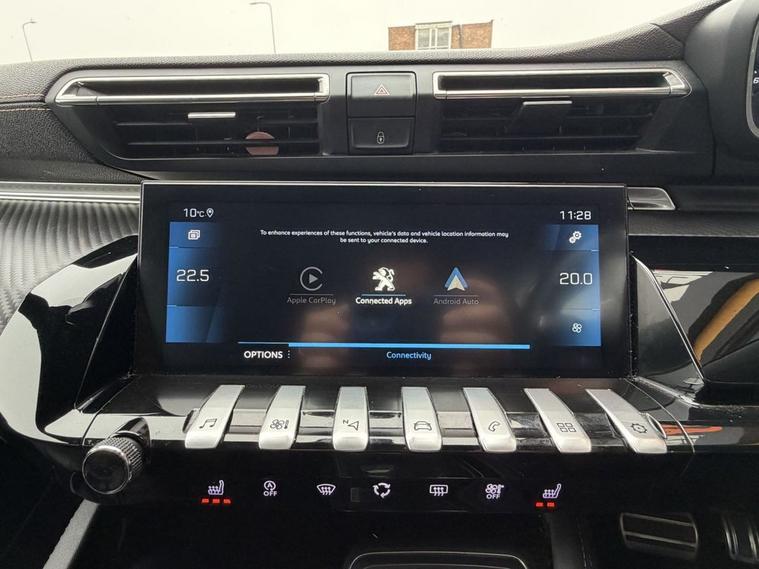 Features: Driver Convenience 3D connected navigation Bluetooth telephone facility Driver attention alert system Eco coaching EPAS Exterior temperature indicator with ice warning Mirror screen with mirror link, apple carplay and android auto Multi function trip computer Passive blind spot monitoring without Steering correction Peugeot connect SOS and assistance PEUGEOT i-Cockpit PEUGEOT i-Cockpit with 10.0 high definition (HD) capacitive touchscreen PEUGEOT i-Cockpit with configurable 12.3 Head-up digital instrument panel Push button start Service interval indicator Visio park assist with colour 360 camera system Voice recognition Entertainment 2x USB sockets in front 2x USB sockets in rear DAB Digital radio Focal premium HiFi sound system Radio/CD with MP3 compatability Exterior 2 X Rear number plate lights 3rd brake light Auto self levelling headlights Automatic activation of hazard warning lights Body colour door handles Body coloured bumpers Dark tinted rear side windows + tailgate window Door mirror mounted LED courtesy approach lights Electric adjustable heated door mirrors Electric folding door mirrors with blind spot detection and electrochrome auto dimming function Flank guard Front and rear electric windows with one touch/anti pinch Front windscreen wiper with magic wash cleaning system Full LED headlights with static cornering light functionality includes rear full LED 3D rear peugeot signature claw effect lights Gloss black B and C pillar and aerodynamic deflector trim Gloss black rear cluster connecting strip Gloss black side window trim GT model designation badging Headlights left on audible warning Heated rear windscreen with integrated antenna LED daytime running lights LED front indicators LED side indicator lights integrated into door mirrors Memory function for door mirrors Model designation badges front and rear Nera black door mirrors Radiator grille chrome chequered and chrome edge trim Rear fog lights Rear lower bumper diffuser effect trim in gloss black Rear reversing lights Rear side wing doors Rear wiper Interior 1/3 to 2/3 split folding rear seats 12V socket 2x Rear coat hooks 3 seat bench in 2nd row 3x Isofix child seat fittings in the front passenger and outer rear seats Aikinite contrast stitching to armrest, front centre console, door panels and dashboard facia Aluminium pedals and footrest Ambient lighting to storage compartments Automatic gear lever in full grain leather and satin chrome Blue ambient lighting to front door panels and front centre console Central front armrest with butterfly wing opening and illuminated storage compartment Driver and front passenger seat adjustable cushion nose Driver and front passenger seat electric lumbar adjustment Driver and front passenger seat heating Dual zone automatic air conditioning
