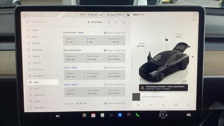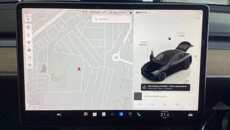 This 2022 Tesla Model Y Long Range has just arrived with zero miles on the clock, indicating it is as new. This electric vehicle boasts a Four Wheel Drive drivetrain and an 85 kWh battery, offering a maximum range of 331 miles when new. It features a heated steering wheel, automatic headlights, and an expansive glass roof with ultraviolet and infrared protection. Inside, you'll find heated front seats and blind spot monitoring for added safety and comfort. The Model Y Long Range is designed for impressive performance, accelerating from 0 to 60 mph in just 4.8 seconds, a speed that sets it apart from many other vehicles. Charging is convenient, with a full charge at home taking approximately 12 hours using a 7kW charger, and a rapid charge to 80% possible in as little as 25 minutes at a public charging station. This model also offers a generous boot space, making it a practical choice for everyday use and longer journeys.