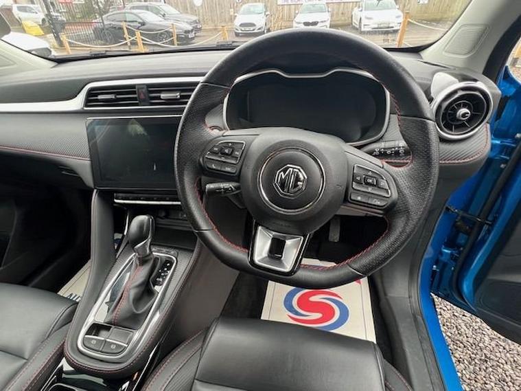ARRIVING SOON, AVAILABLE TO RESERVE TODAY! 2023/72 MG ZS 1.0 T-GDi Exclusive finished in Battersea Blue. We are pleased to offer this lovely 5 door petrol SUV. This is the highly desirable and economical 1.0 litre model with a 6 speed automatic transmission that offers 110 BHP. Insurance group 14/50. It has covered just 26, 144 miles with service history (details to follow) and drives as you would expect. MOT until 2nd February 2027 with no advisories. A brand new service will be completed. We will also include a complimentary 12 month AA breakdown cover. One owner from new. Euro 6 status - ULEZ compliant. A superb low mileage example with the sought-after Exclusive specification. Highlights include; navigation with 10.1 high resolution touchscreen display, 17 Tomahawk two-tone diamond cut alloy wheels, 360 degree parking camera with rear parking sensors, A/C, Apple CarPlay & Android Auto, auto headlights, LED DRLs, blind spot monitoring, bluetooth connectivity, cruise control with speed limiter, DAB, USB, AUX, electric/heated seats, hill launch assist, remote central locking x 2 with keyless entry/start, electric parking brake with auto hold and electric folding mirrors. The full specification list can be found on our website. Advertised below the AutoTrader RRP. Please let us know if you would like any further information or a detailed video sent via WhatsApp.