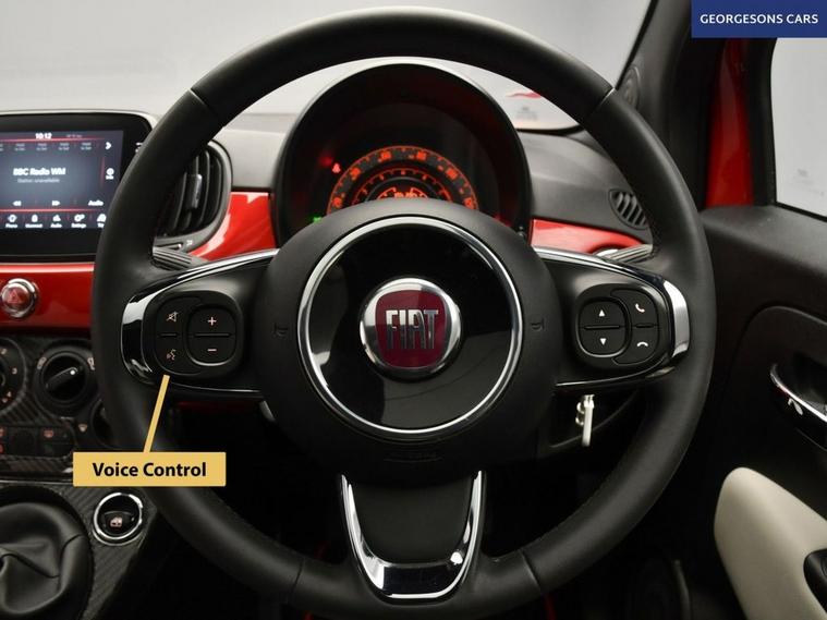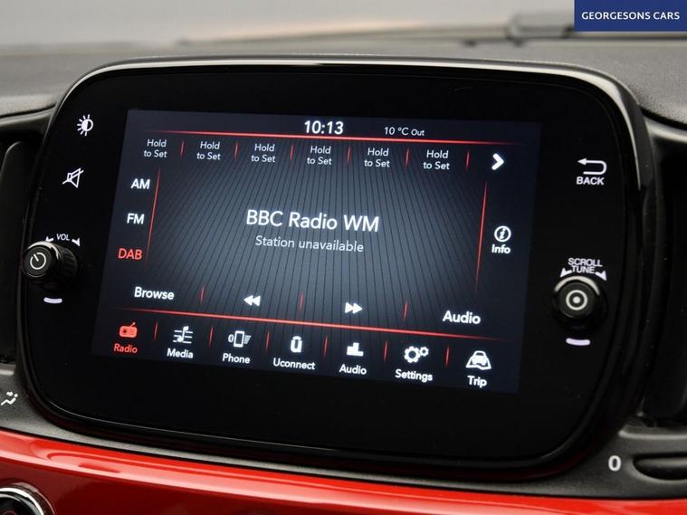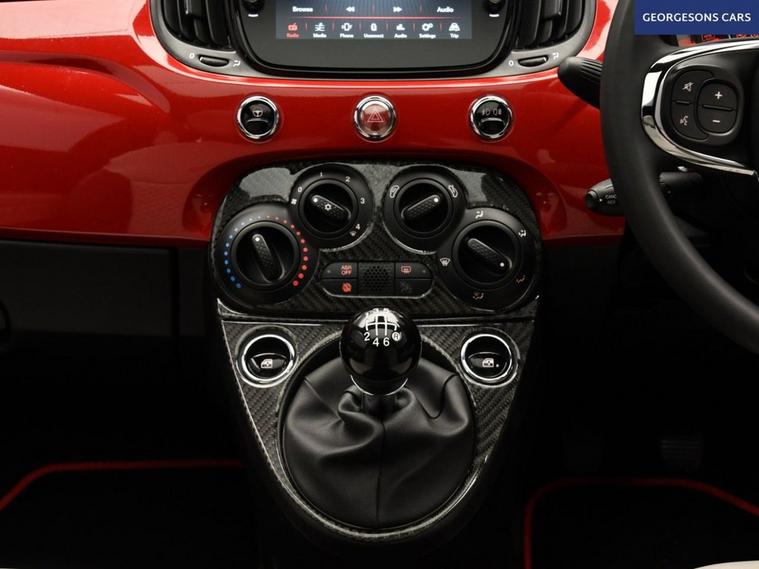 The Fiat 500 1.0 MHEV Dolcevita combines a responsive 1.0-litre mild-hybrid petrol engine with 70hp, delivering 0-62mph in 13.8 seconds and up to 60.1mpg in this front-wheel-drive setup with a precise 6-speed manual transmission. The Dolcevita trim offers retro premium style with 16-inch alloy wheels, chrome detailing, ivory interior and a high-grade cabin. Enjoy open-air driving with the sunroof, while integrated Apple CarPlay, Bluetooth and DAB radio ensure seamless connectivity on every journey. Parking is a breeze thanks to the parking sensors, providing confidence in tight spaces. Stay comfortable with air conditioning, offering personalised cooling year-round. Cruise control with speed limiter enhances relaxation on highways. The iconic three-door hatchback design includes a 185-litre boot for practicality.