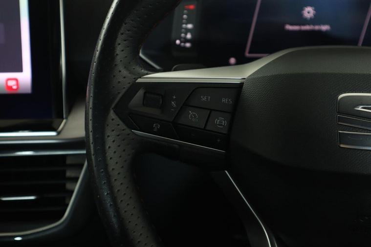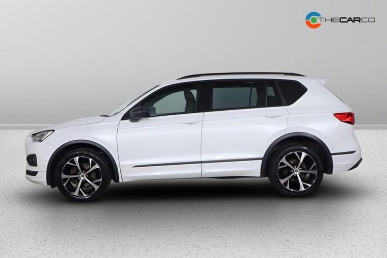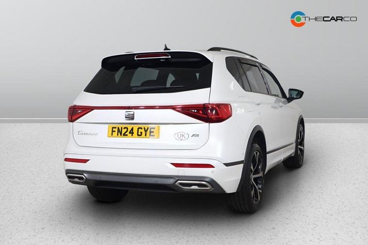 This 2024 SEAT Tarraco TDI FR is a superb example, having had only one owner from new. This stylish seven seater SUV boasts a powerful yet efficient 2.0 litre diesel engine, meeting Euro 6 emission standards. Its FR trim level ensures a sporty feel, and you'll appreciate the convenience of Keyless Enter and Go with an electric tailgate operated by a virtual pedal, alongside a Media System Colour with Bluetooth connectivity. For effortless journeys, Adaptive Cruise Control with a speed limiter is included, and the three zone climate control ensures comfort for all occupants. The electric driver's seat, complete with memory function and lumbar support, adds a touch of luxury. This Tarraco offers excellent value, highlighted by its impressive fuel economy of 50 mpg, making it more economical than many similar vehicles. Furthermore, its low insurance group and low CO2 emissions indicate lower running costs compared to other cars in its class. This combination of efficiency, practicality, and advanced features makes the SEAT Tarraco TDI FR a compelling choice for families and individuals seeking a capable and cost effective SUV.