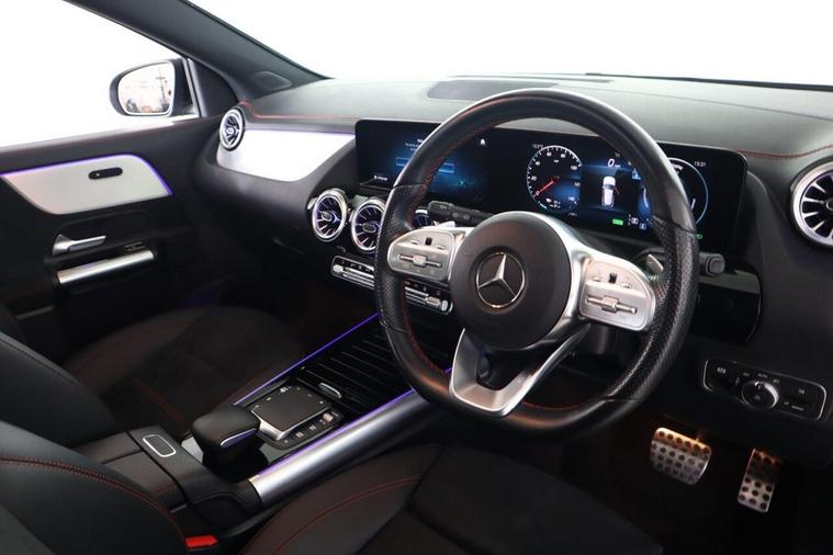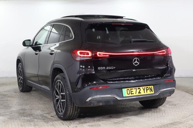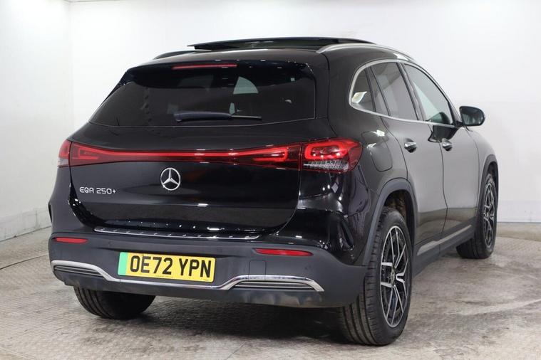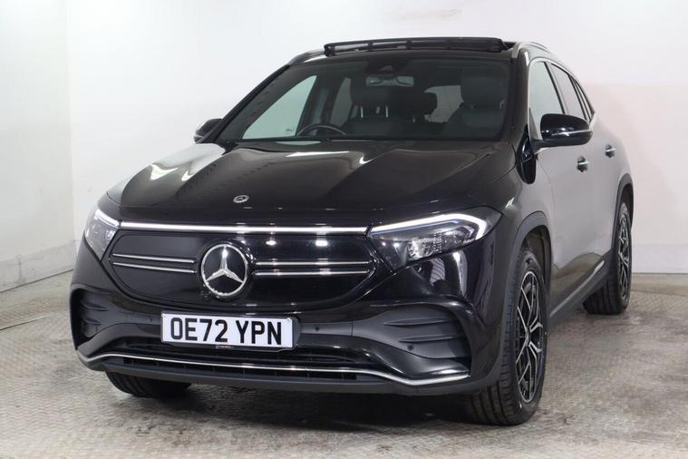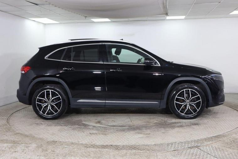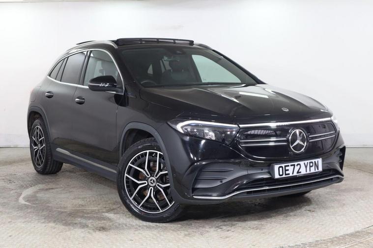 This 2022 Mercedes-Benz EQA 250+ AMG Line (Premium) offers an impressive electric driving experience with a maximum range of 316 miles from its 78 kWh battery. As an electric vehicle, it provides a smooth and quiet ride, complemented by the sporty AMG Line trim. This particular model benefits from a Keyless Go Comfort Package for effortless entry and starting, along with convenient wireless charging for your mobile devices. You'll also enjoy the advanced sound system and striking 19in AMG 5-twin-spoke alloy wheels, finished in high-gloss black. The LED High Performance headlights ensure excellent visibility, while the charging capabilities are designed for modern convenience. A full charge at home using a 7kW charger takes approximately 11 hours and 6 minutes, making overnight charging simple. For quicker top-ups, you can achieve an 80% charge from empty in just 34 minutes at a compatible public charging station. These features collectively highlight how this Mercedes-Benz EQA stands out, offering both substantial electric range and a premium, well-equipped driving environment.