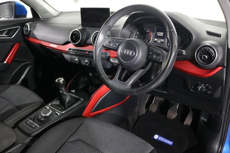 This desirable Audi Q2 Sport finished in Ara Blue looks fantastic complemented by 17 inch Alloy Wheels. Find your way with integrated SATELLITE NAVIGATION with LCD Pop-Up Display. Keep connected to your Phones APPS with APPLE CARPLAY and ANDROID AUTO. Park in ease with REAR PARKING SENSORS. Listen to your music through DAB Digital Radio. Keep connected with BLUETOOTH Phone System. Comfortable to drive with AIR CONDITIONING and CRUISE CONTROL. Well equipped with Power-Operated Tailgate, Auto Headlights and Rain-Activated Wipers. Also fitted with ISOFIX seats, Multifunctional Steering Wheel Audi Drive Select, Alarm, Immobiliser and Remote Door Locking with 2 x keys.