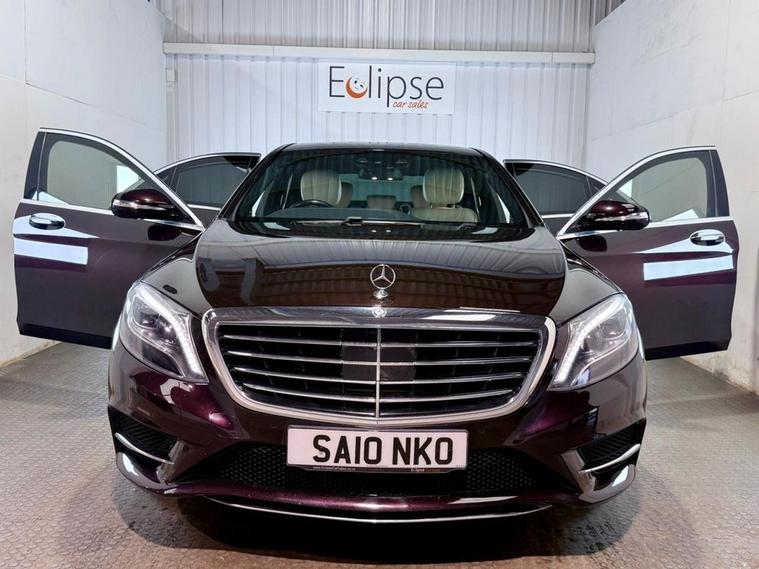 Mercedes-Benz S-Class AMG Line (Executive) Saloon first registered March 2016 (currently on a private registration). Finished in Ruby Black metallic with Beige Nappa Leather interior and 19 inch 5 spoke black alloy wheels. Spec includes heated electric front seats with memory and rear heated cooled and electrically adjustable seats, rear seat climate control, roller blind for rear, 360 surround view camera, COMAND navigation, heated windshield washer system, DVD drive, advanced parking systems and electrically folding door mirrors.